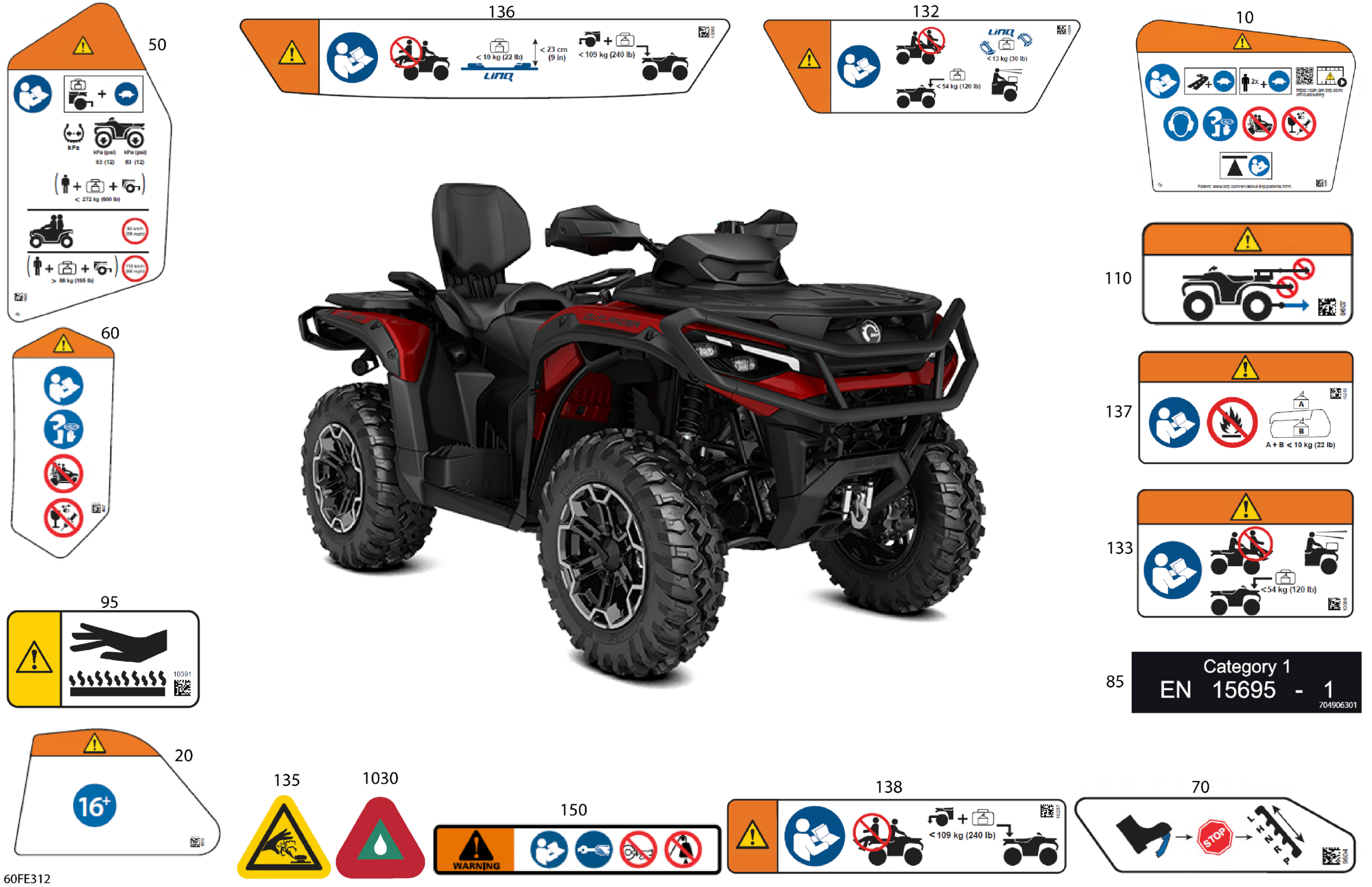 Can-Am Off-Road CE - OUT-MAX - 4X4 - XT - 850 - 4SSD - Fiery Red Metallic - 2025 07- Body - Warning Decals Diagram