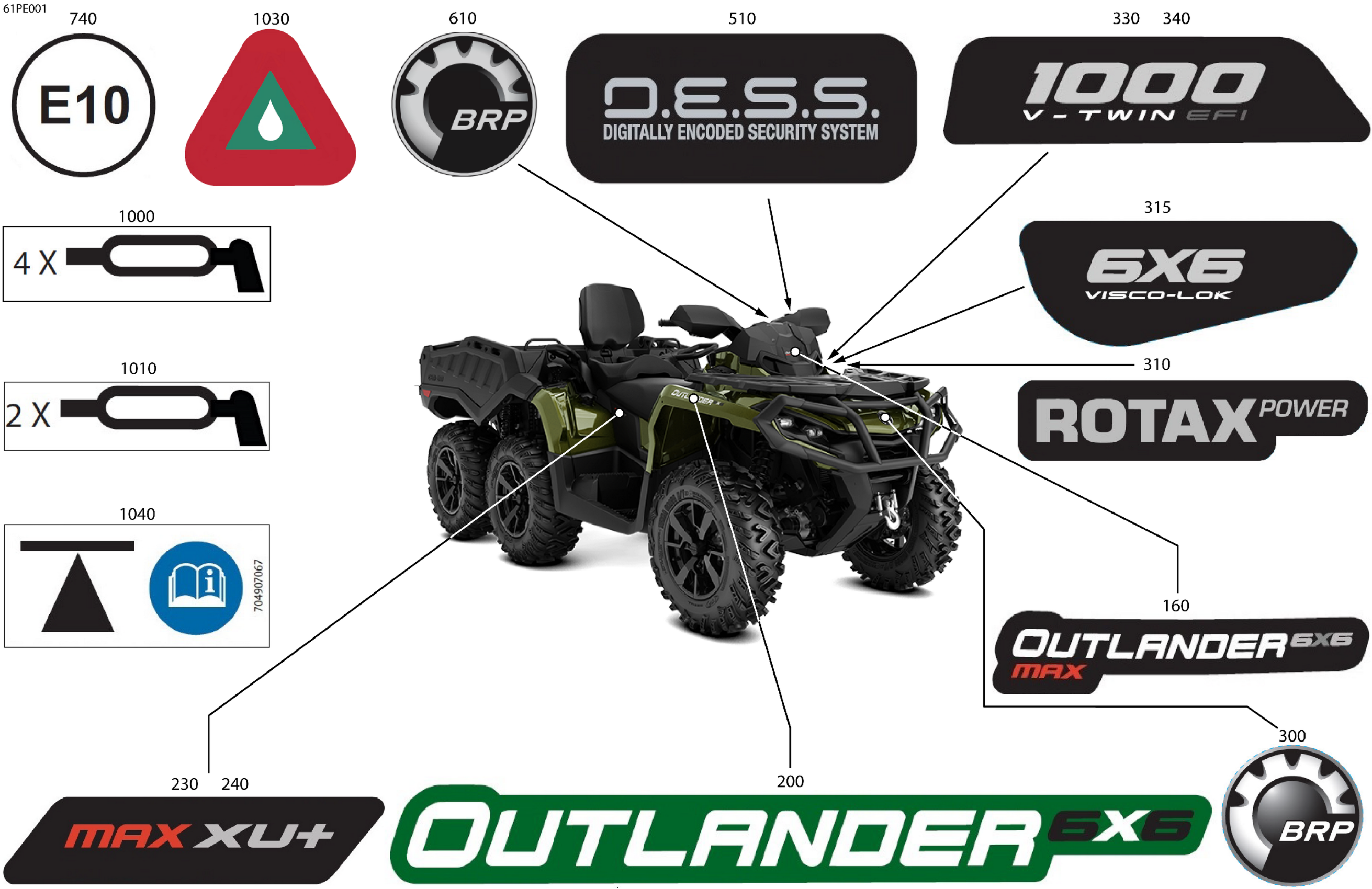 Can-Am Off-Road CE - OUT-MAX - 6X6 - XU+ - 1000 EFI - 2GSA - Boreal Green - 2025 07- Body - Feature Decals Diagram