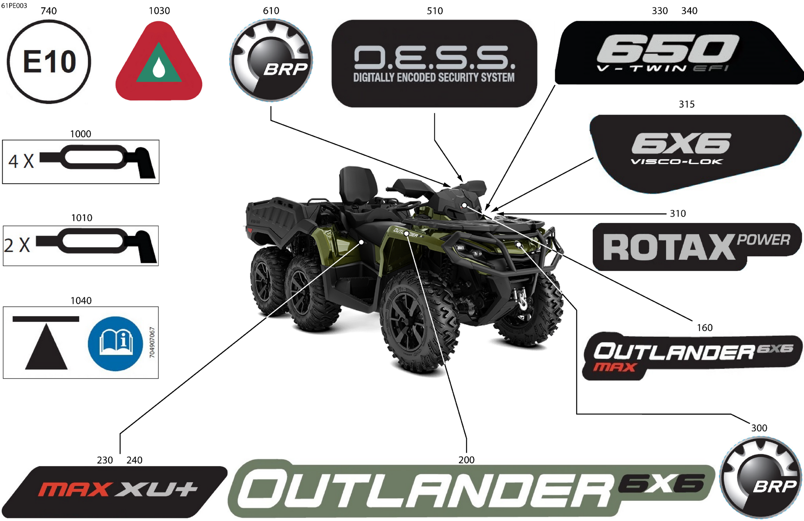 Can-Am Off-Road CE - OUT-MAX - 6X6 - XU+ - 650 EFI - 2JSA - Tundra Green - 2025 07- Body - Feature Decals Diagram