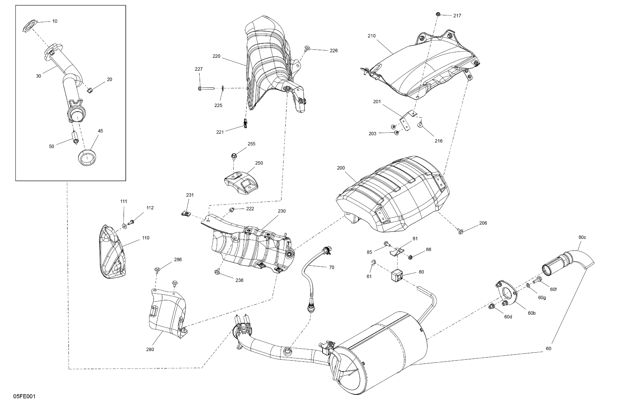 Can-Am Off-Road CE - OUTL-PRO - 4X4 - XU - HD7 - 1MSF - Compass Green - 2025 02- Engine - Exhaust Diagram