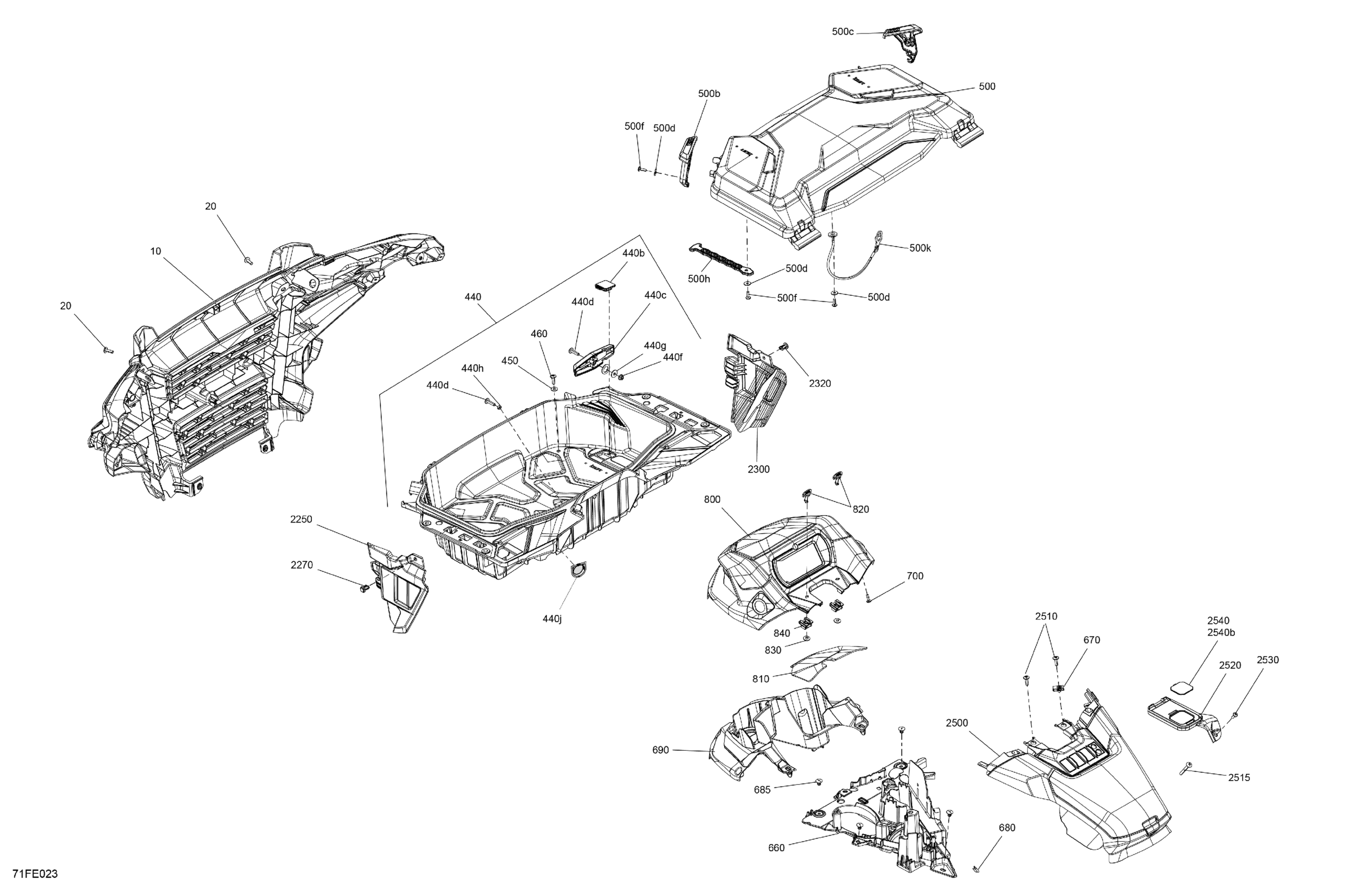 Can-Am Off-Road CE - OUTL-PRO-MAX - 4X4 - XU - HD7 - 2BSB - Compass Green - 2025 07- Body - Front Section Diagram