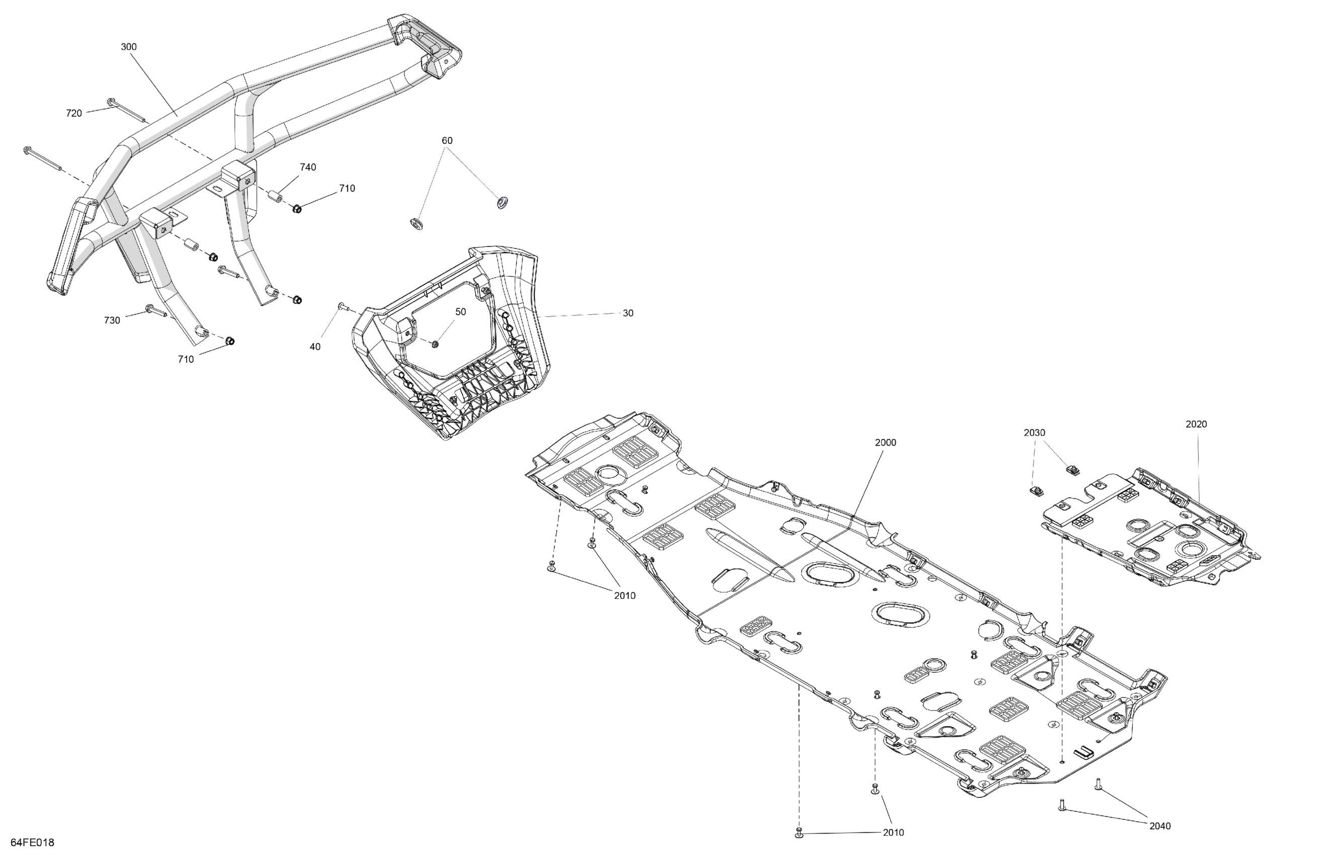 Can-Am Off-Road CE - OUTL-PRO-MAX - 4X4 - XU - HD7 - 2BSB - Compass Green - 2025 07- Body - Skid Plate and Bumper Diagram