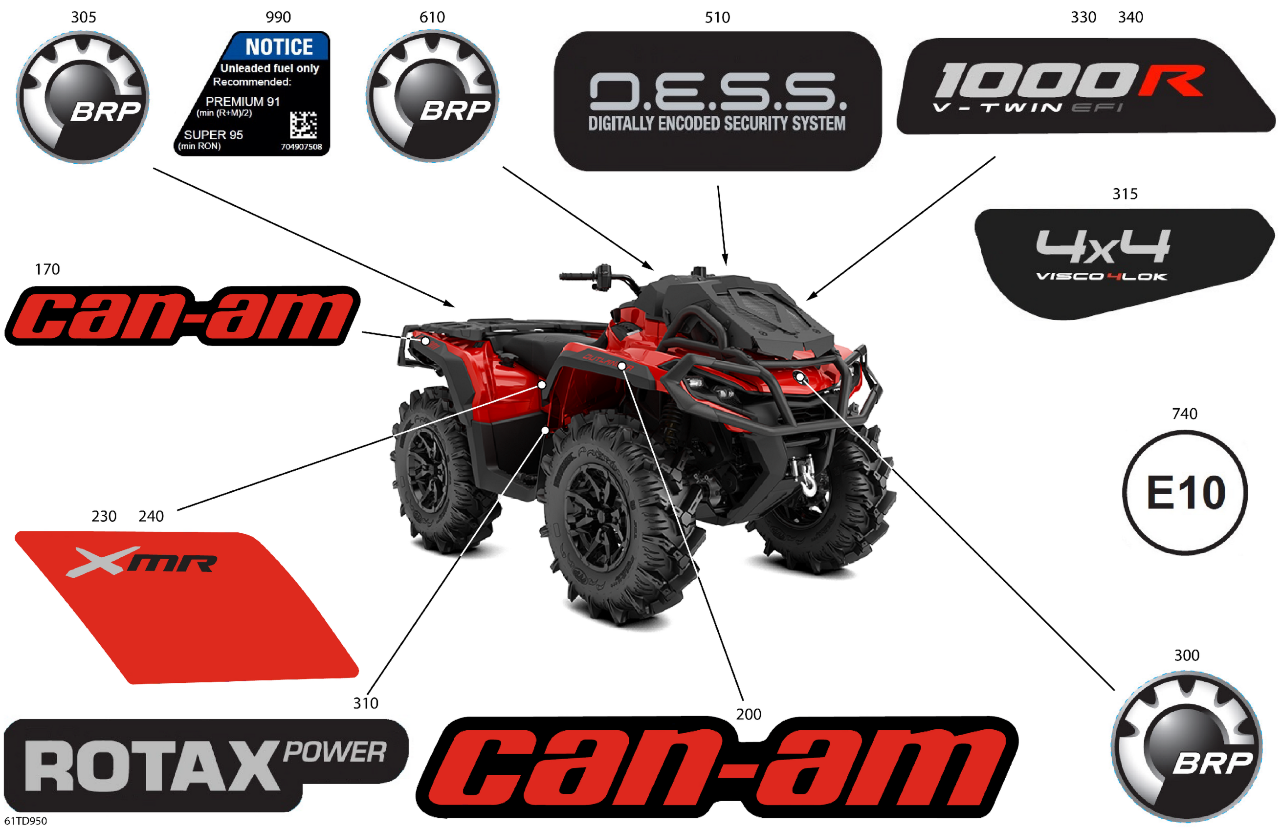 Can-Am CE - Outlander 1000R EFI 4X4 - 5KRD - X MR Package - Hyper Silver, 2024 Body - Feature Decals Diagram
