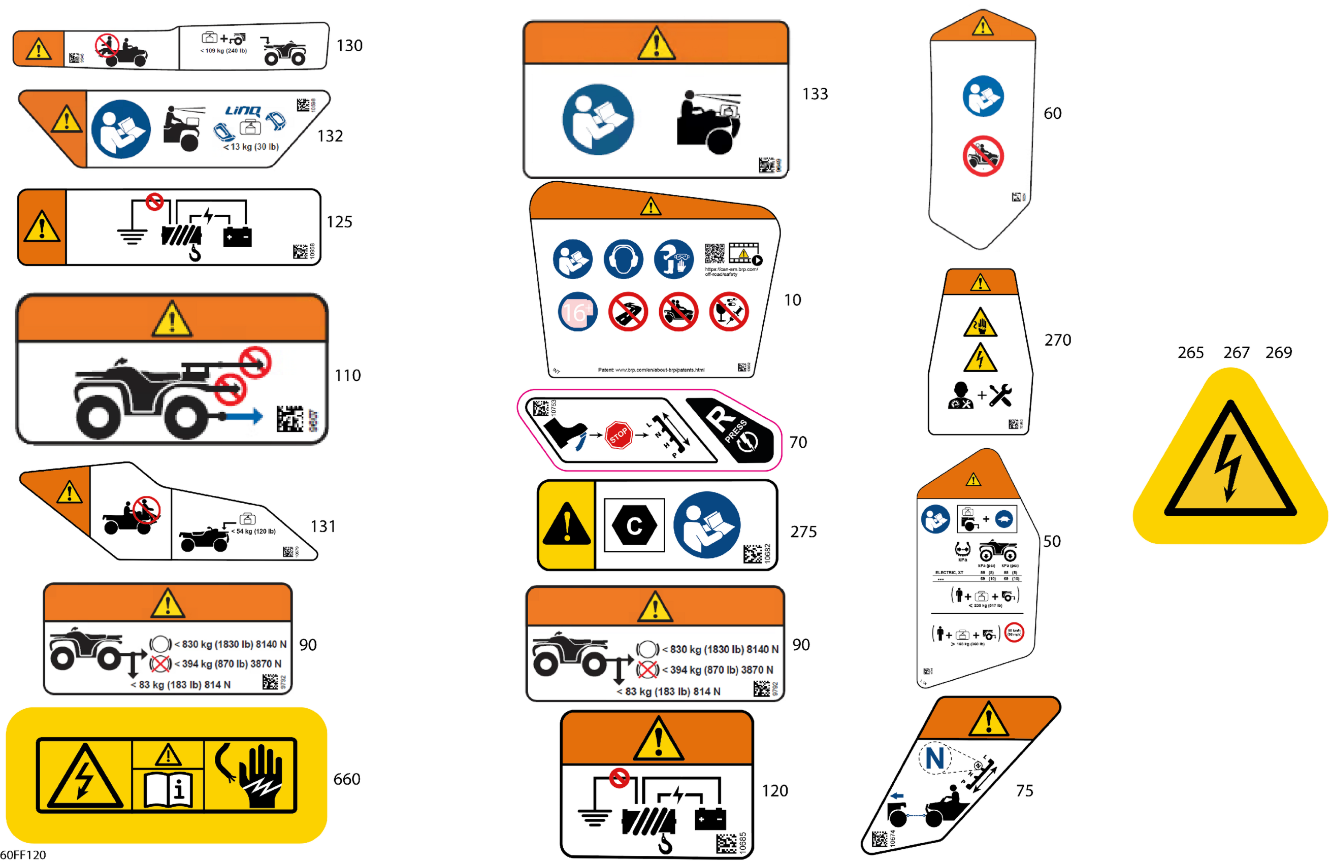 Can-Am Off-Road CE - OUTLANDER - 4X4 - EV - 2WTC - Bright White - 2026 07- Body - Warning Decals Diagram