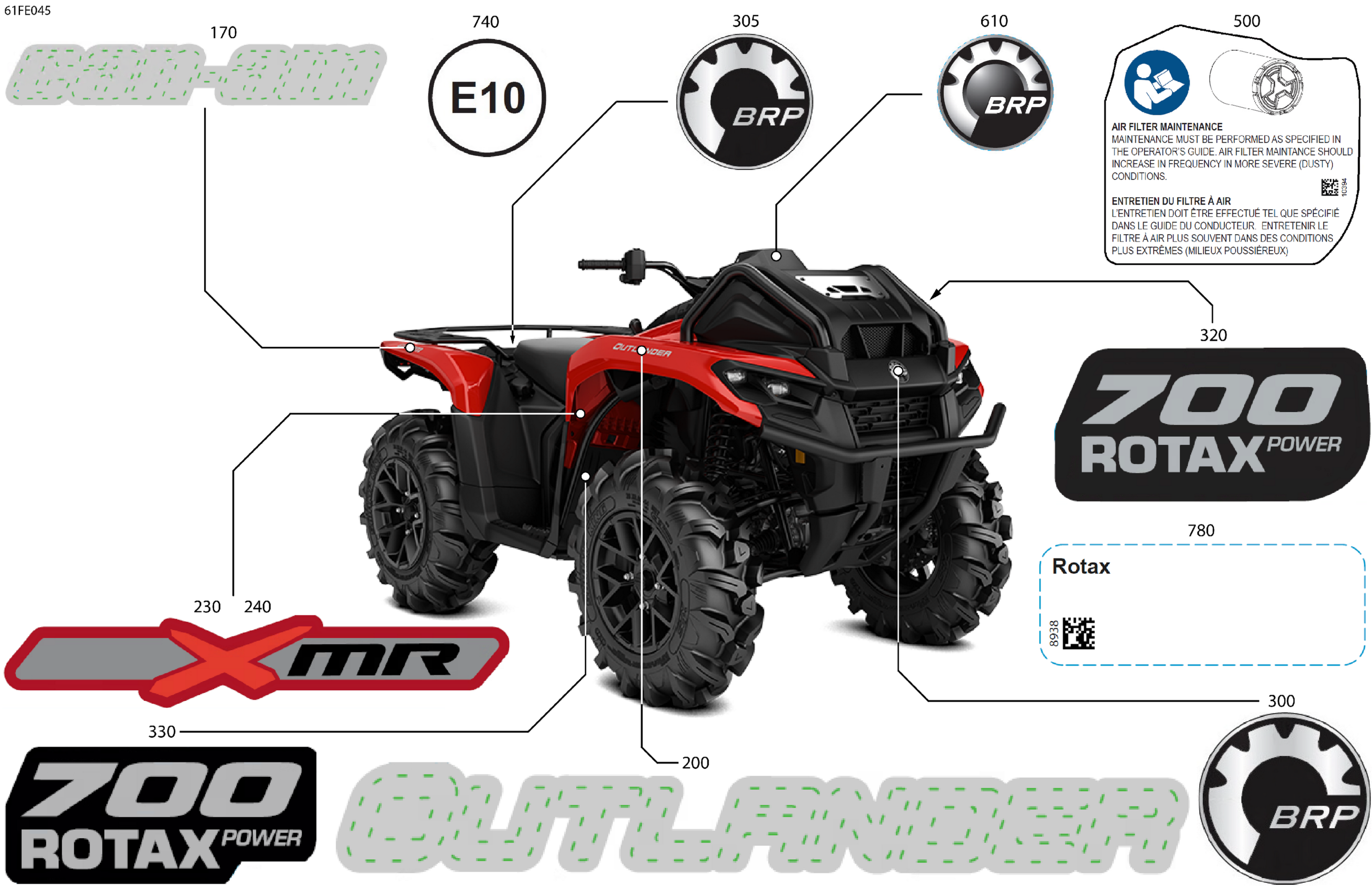 Can-Am Off-Road CE - OUTLANDER - 4X4 - XMR - 700 - 1SSC - Legion Red - 2025 07- Body - Feature Decals Diagram