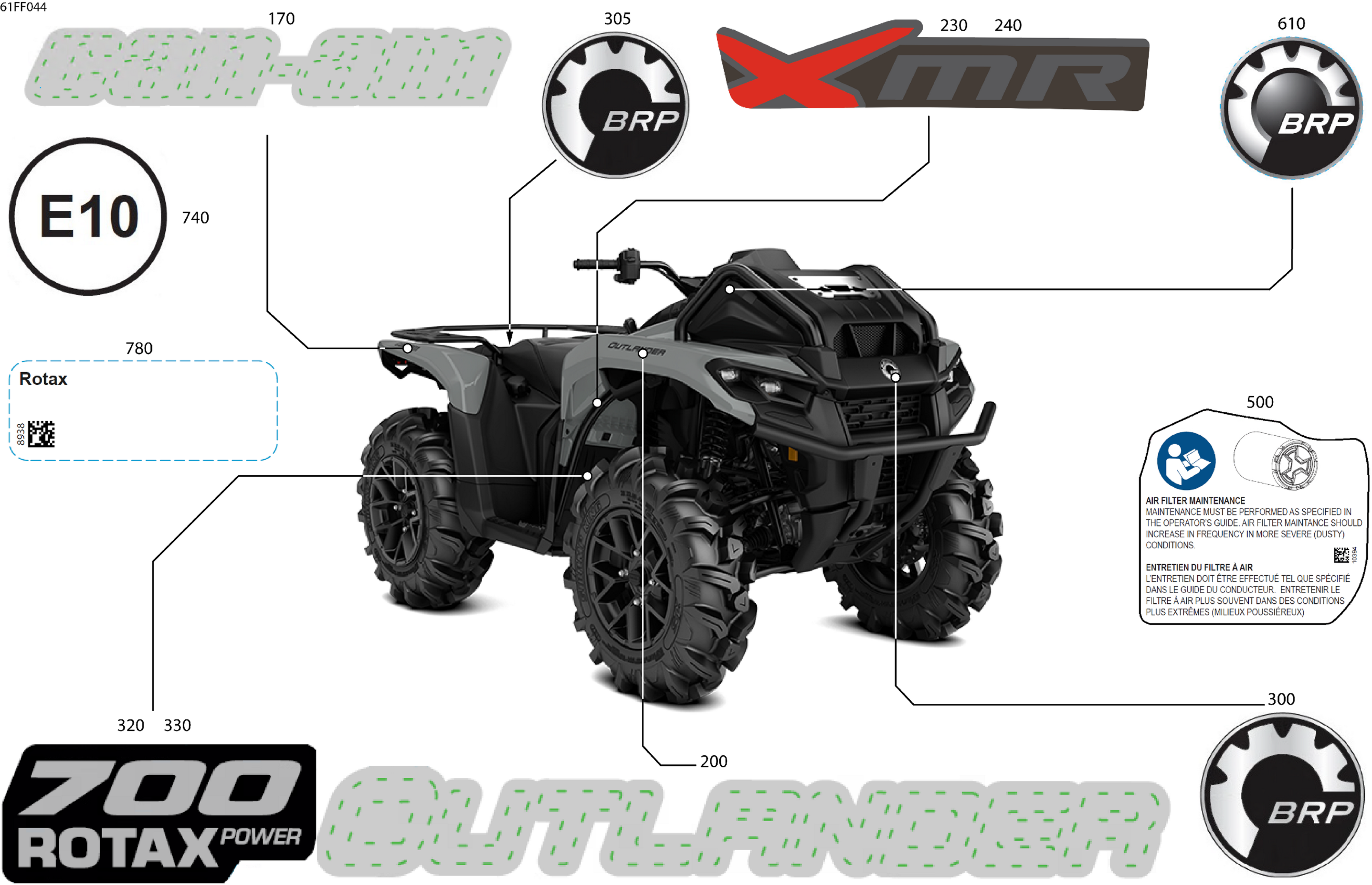 Can-Am Off-Road CE - OUTLANDER - 4X4 - XMR - 700 - 1STD - Granite Grey - 2026 07- Body - Feature Decals Diagram
