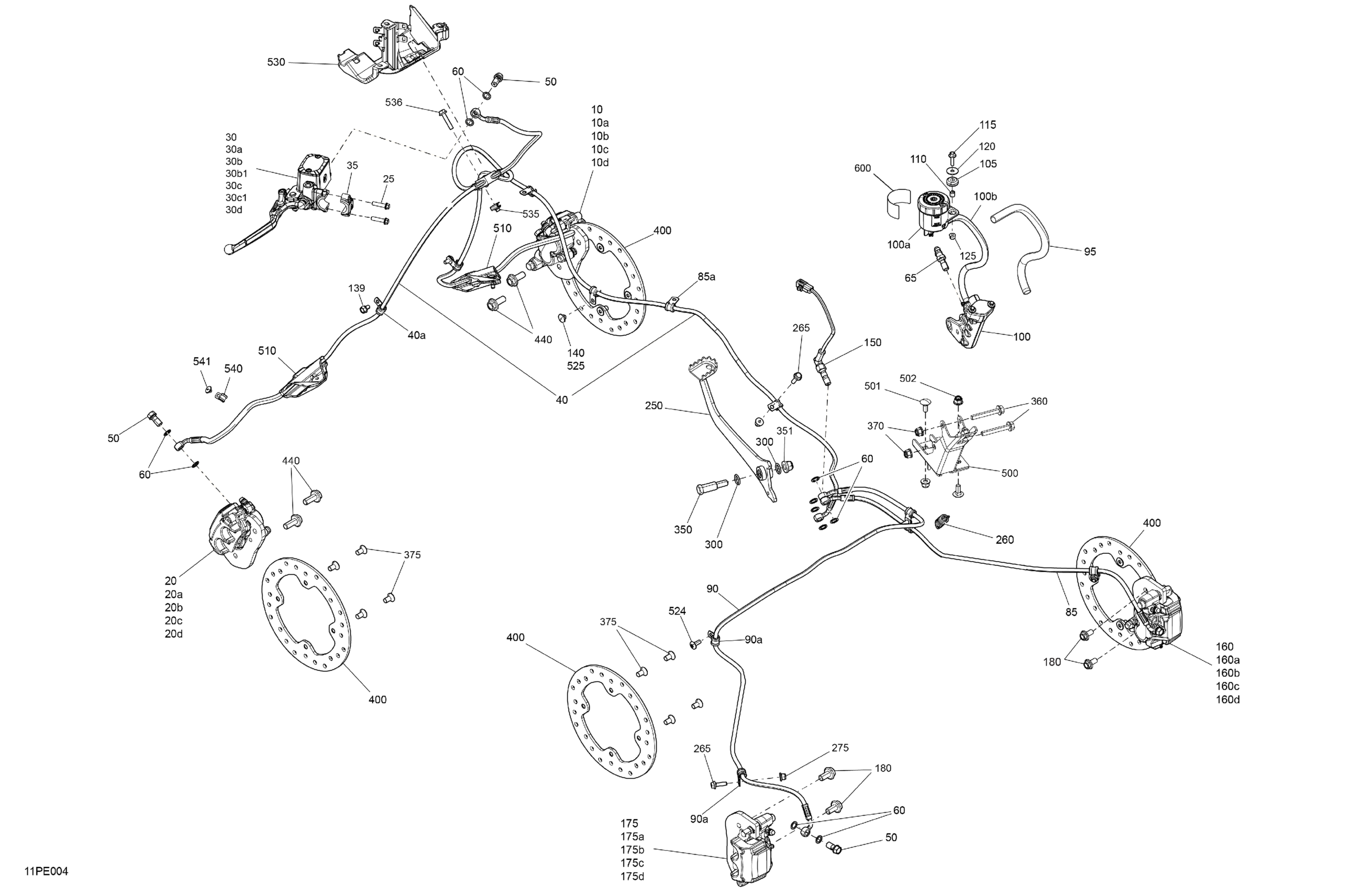 Can-Am Off-Road CE - OUTLANDER - 6X6 - XU+ - 650 EFI - 2KSA - Tundra Green - 2025 03- Mechanic - Brake System Diagram