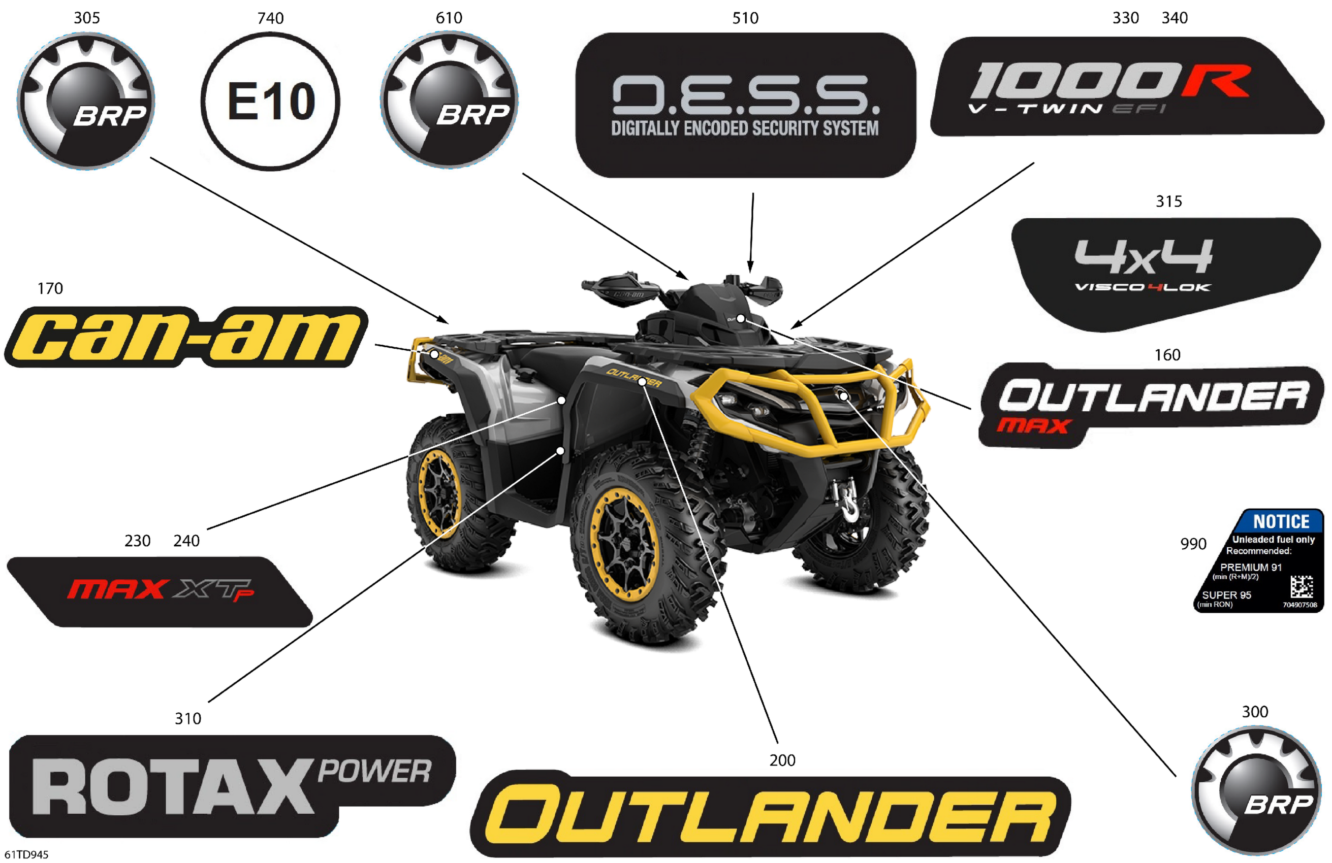 Can-Am CE - Outlander MAX 1000R EFI 4X4 - 5JRC - XT-P Package - Hyper Silver, 2024 Body - Feature Decals Diagram