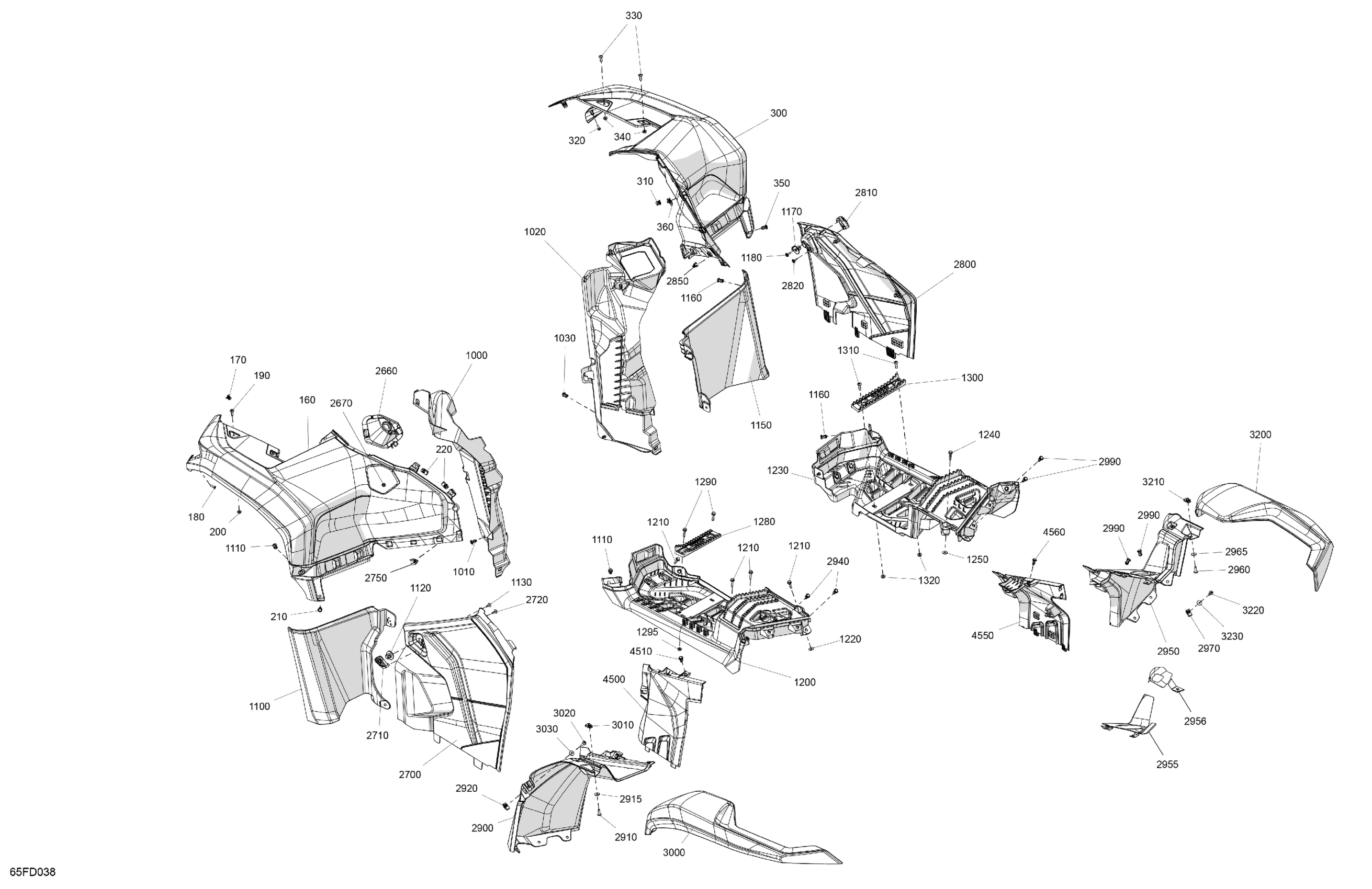 Can-Am CE - Outlander Max 700 4X4 - 1YRD - XT Package - Platinum Silver Satin, 2024 Body - Fender Kit Diagram