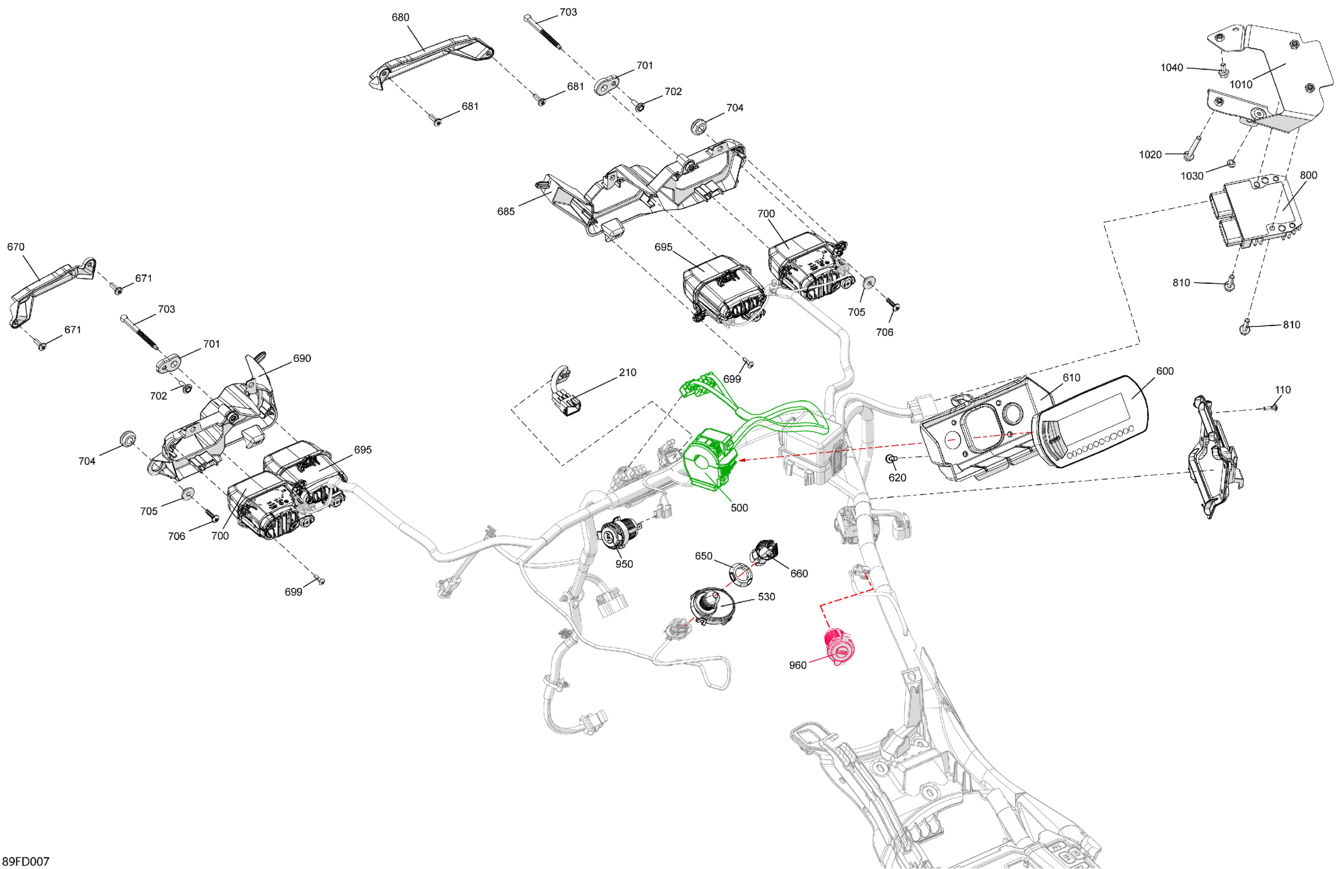 Can-Am CE - Outlander Max 700 4X4 - 1YRD - XT Package - Platinum Silver Satin, 2024 Electric - Front Section Diagram