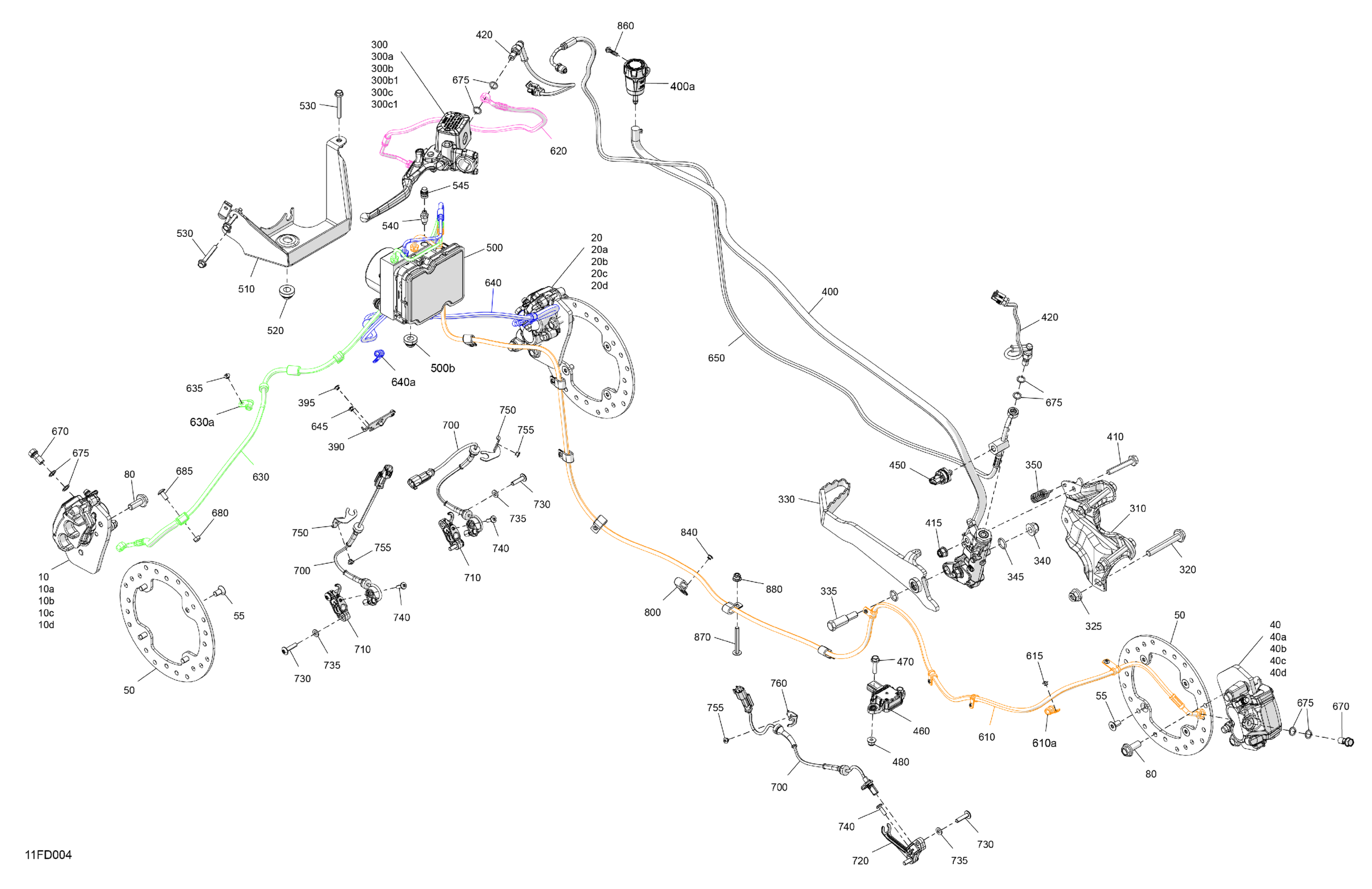 Can-Am CE - Outlander Max 700 4X4 - 1YRE - XT Package - Platinum Silver Satin, 2024 Mechanic - Brake System Diagram