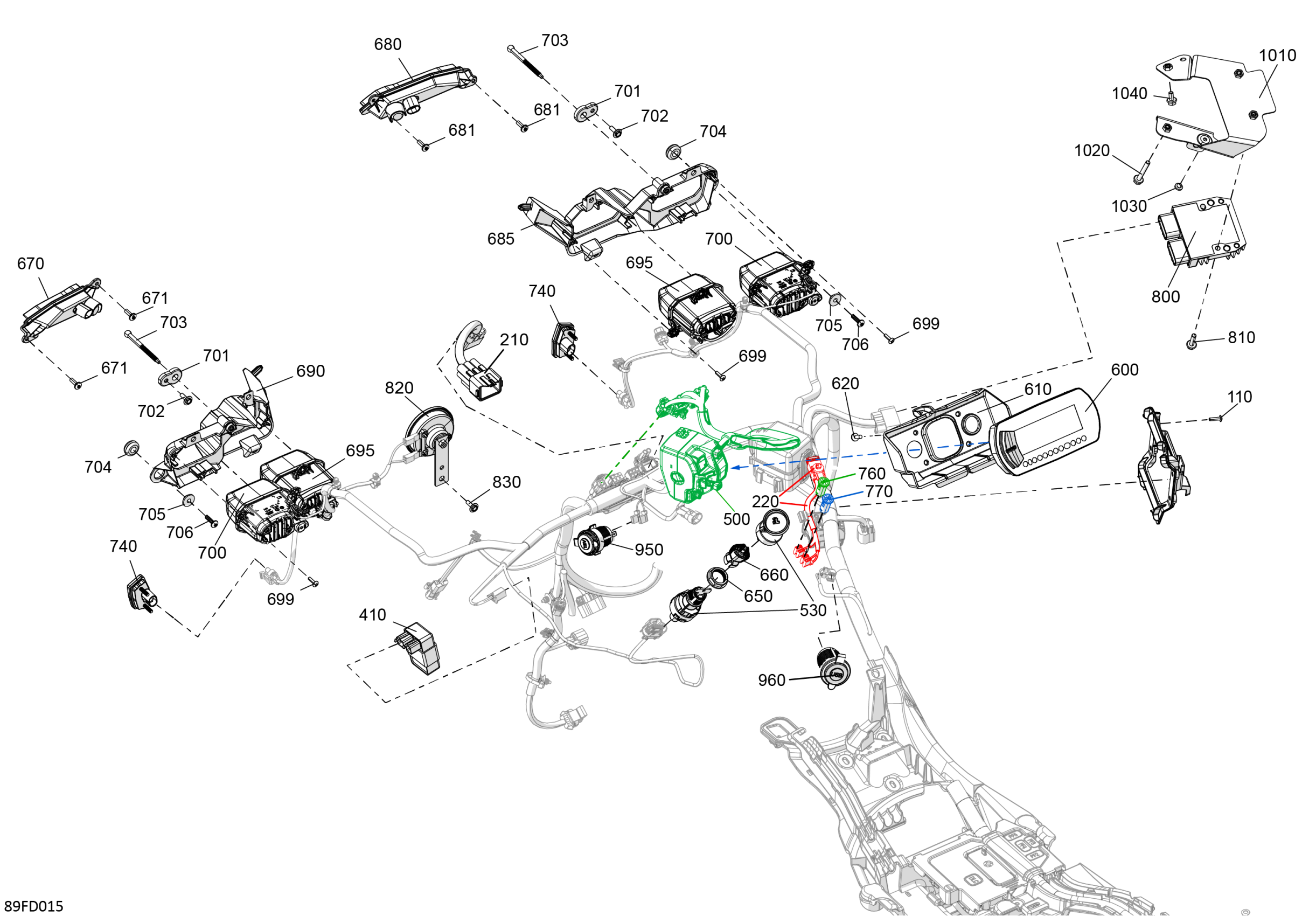 Can-Am CE - Outlander Max 700 4X4 - 1YRE - XT Package - Platinum Silver Satin, 2024 Electric - Front Section Diagram