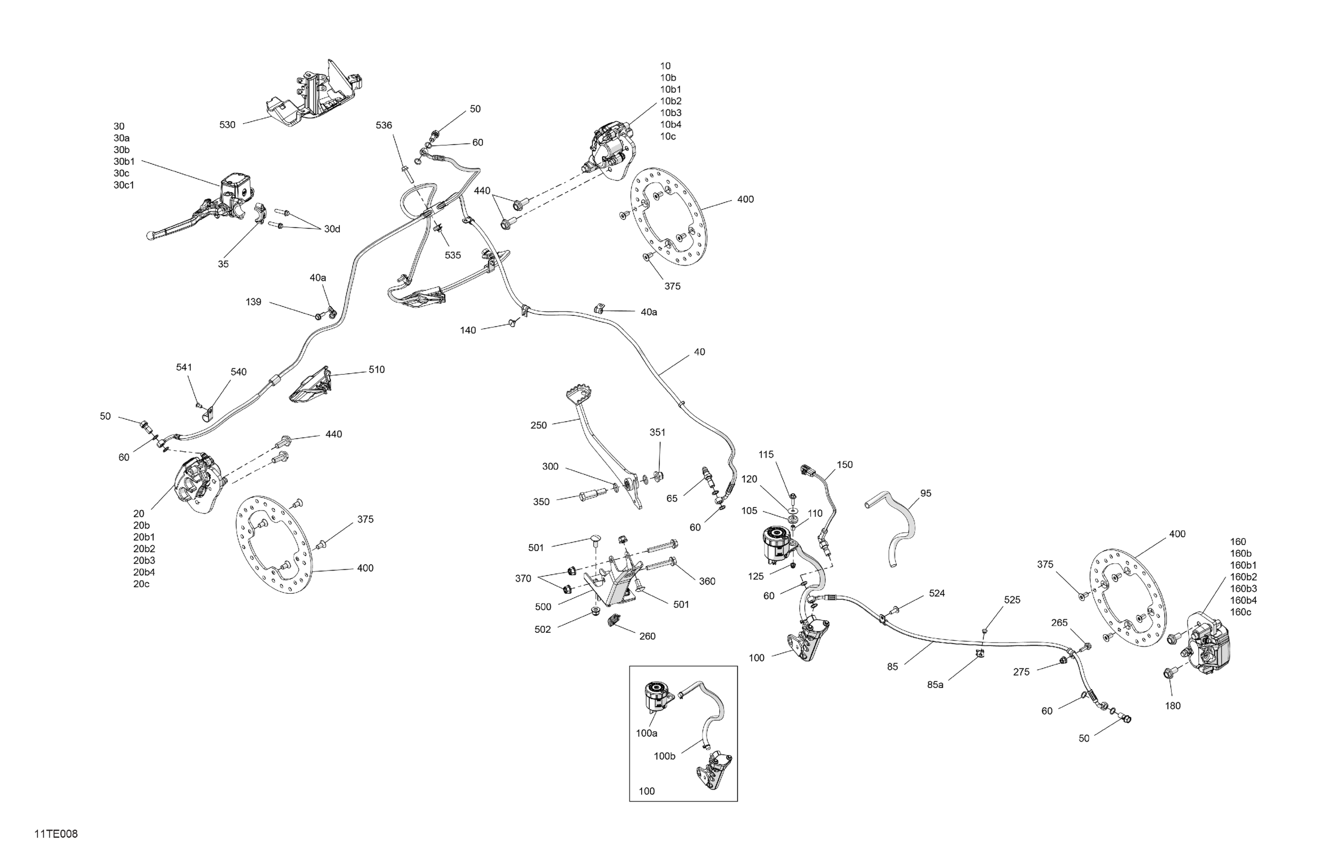 Can-Am CE - RENEGADE - 4X4 - XMR - 1000R EFI - 5USD - Hyper Silver - 2025 Mechanic - Brake System Diagram