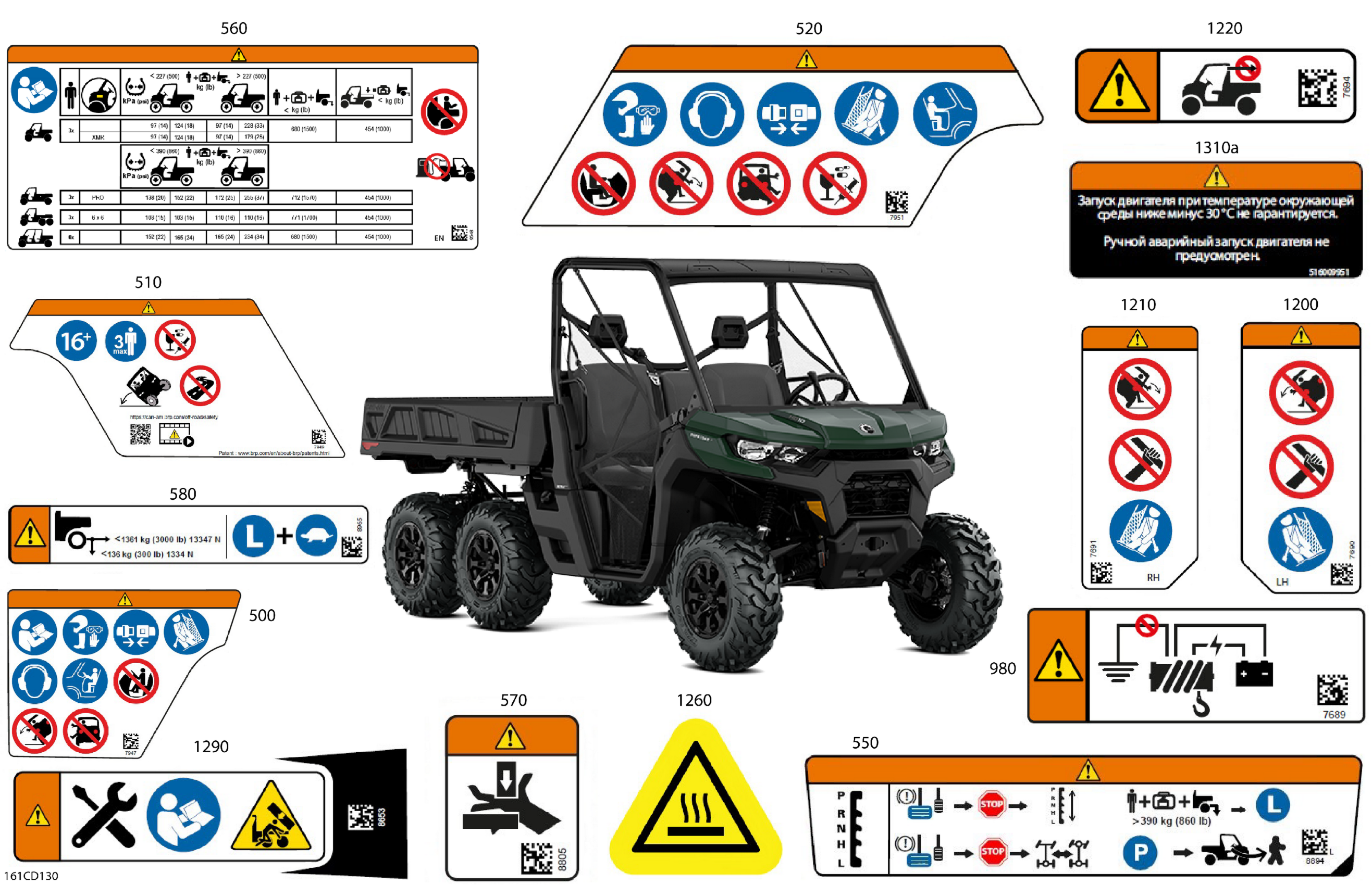 Can-Am CE - Traxter 6X6 HD10 - DPS - 9VRN - Tundra Green - 64" Width, 2024 Body - Warning Decals Diagram