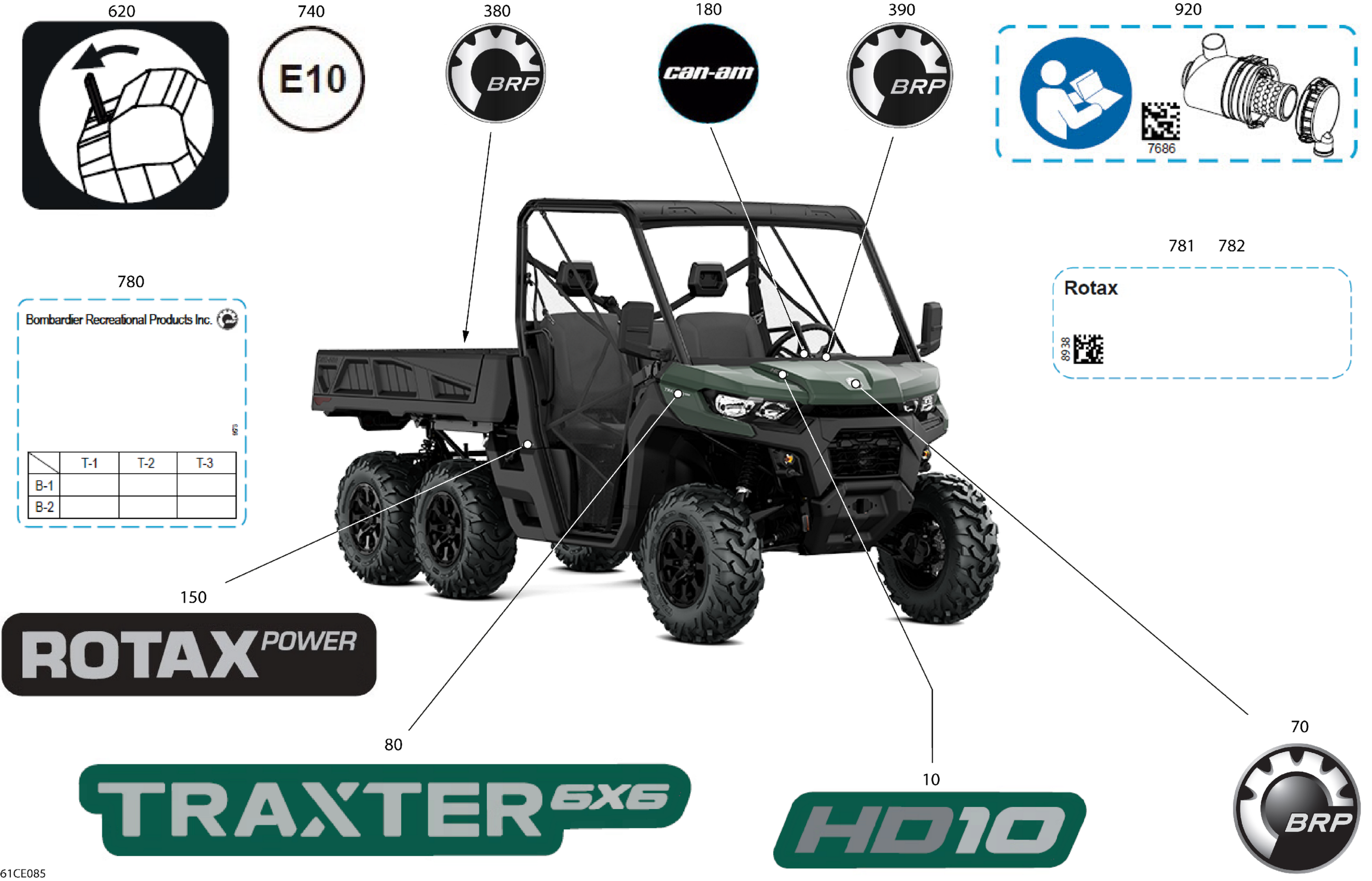 Can-Am CE - Traxter 6X6 - HD10 - DPS - 9VSN - Compass Green - 64" Width - 2025 Body - Decals Diagram