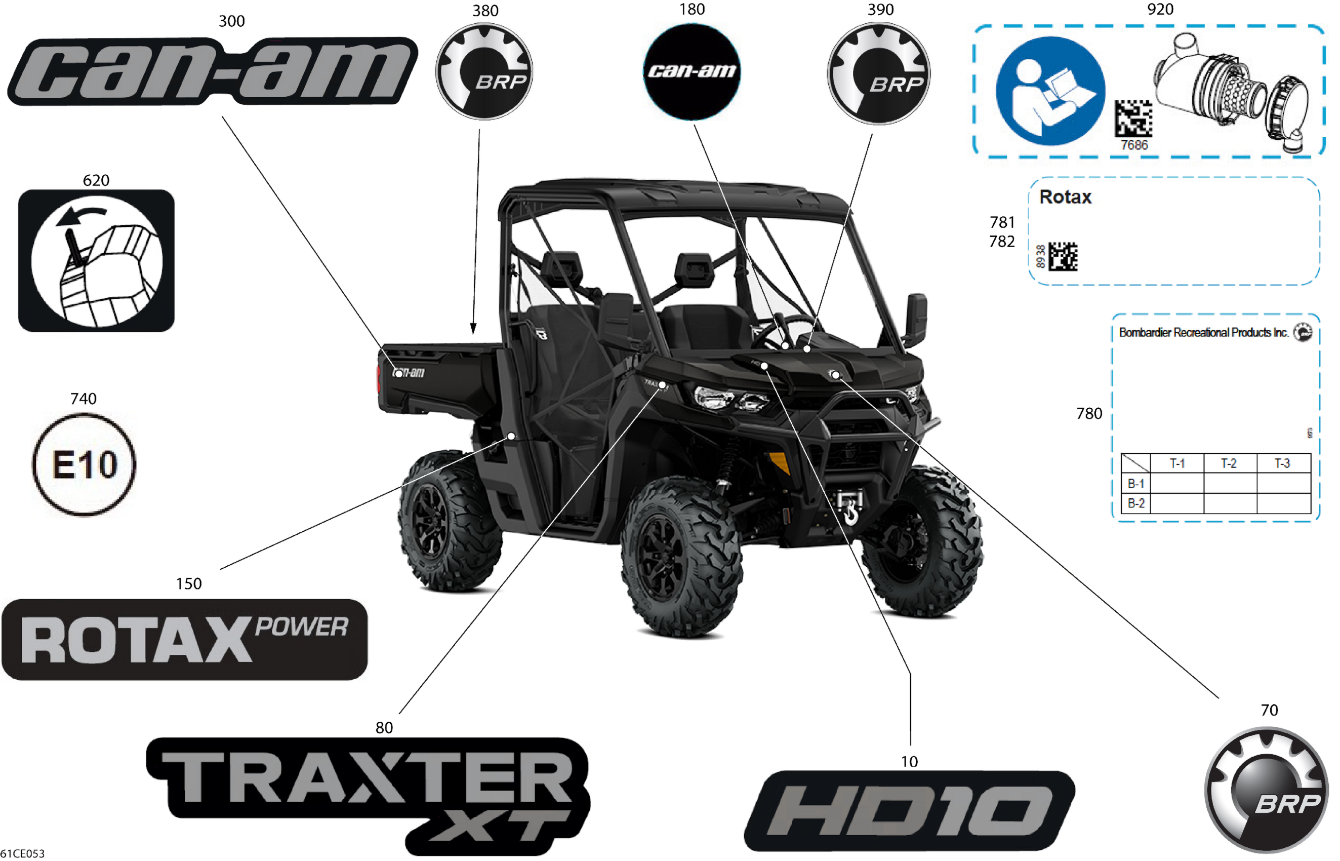 Can-Am CE - Traxter - HD10 - XT - 8CSN - Stealth Black - 64" Width - 2025 Body - Decals Diagram