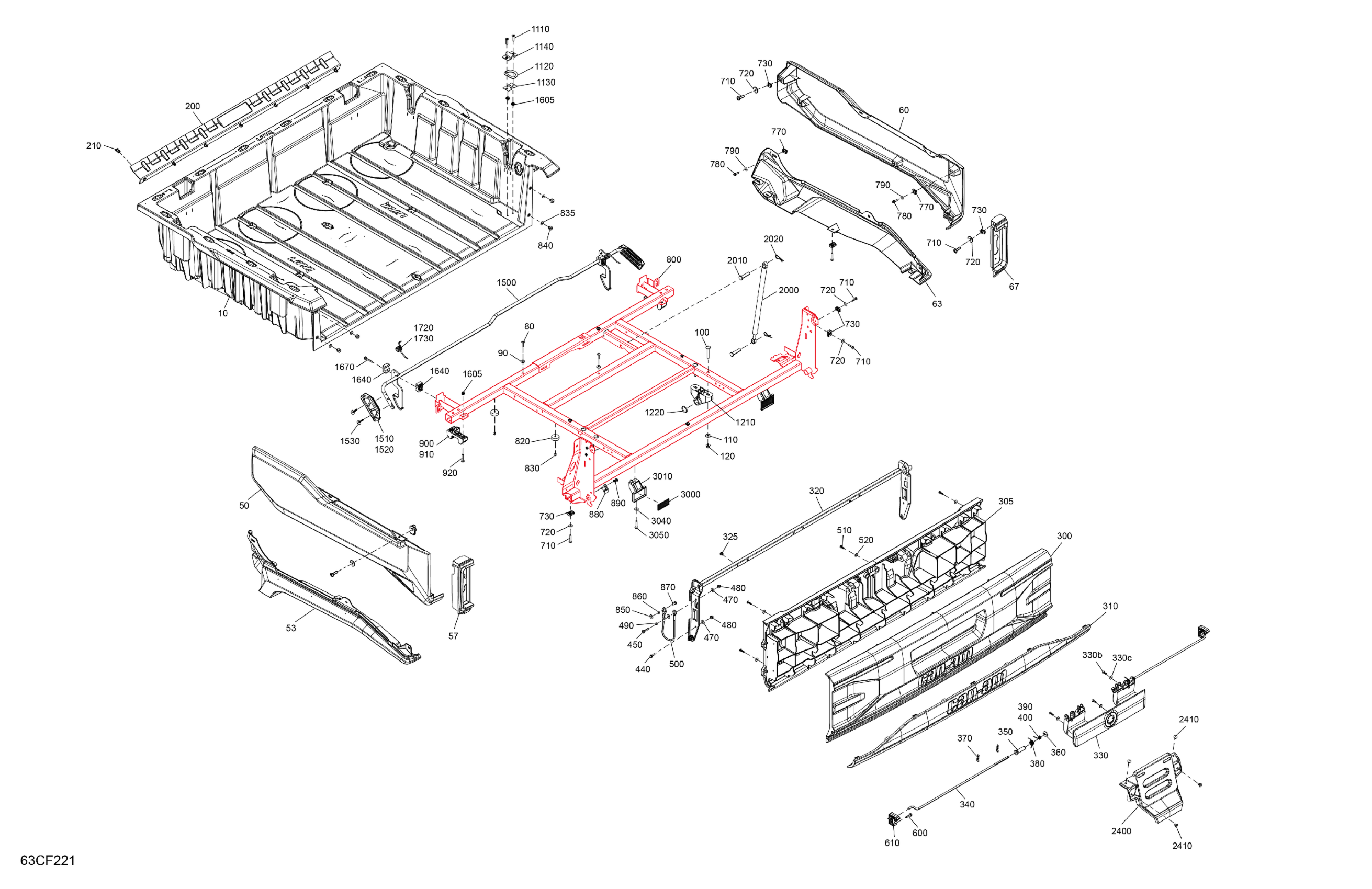 Can-Am CE - Traxter - HD11 - XT - 8CTT - Stealth Black - 65" Width, 2026 Body - Cargo Diagram