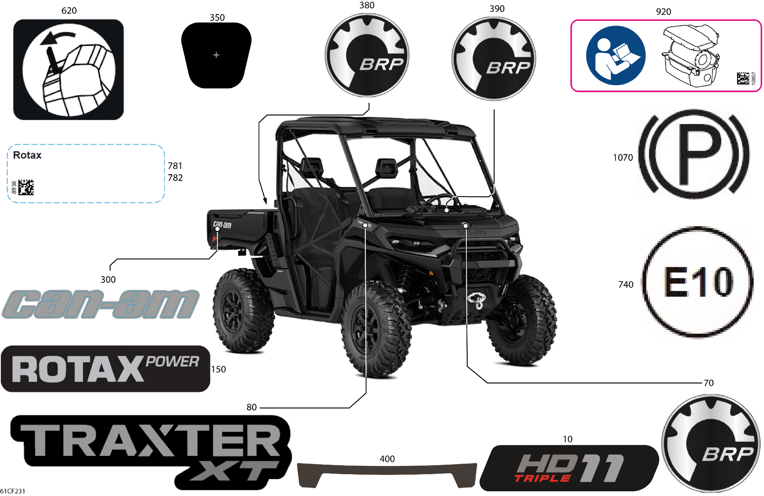 Can-Am CE - Traxter - HD11 - XT - 8CTT - Stealth Black - 65" Width, 2026 Body - Decals Diagram