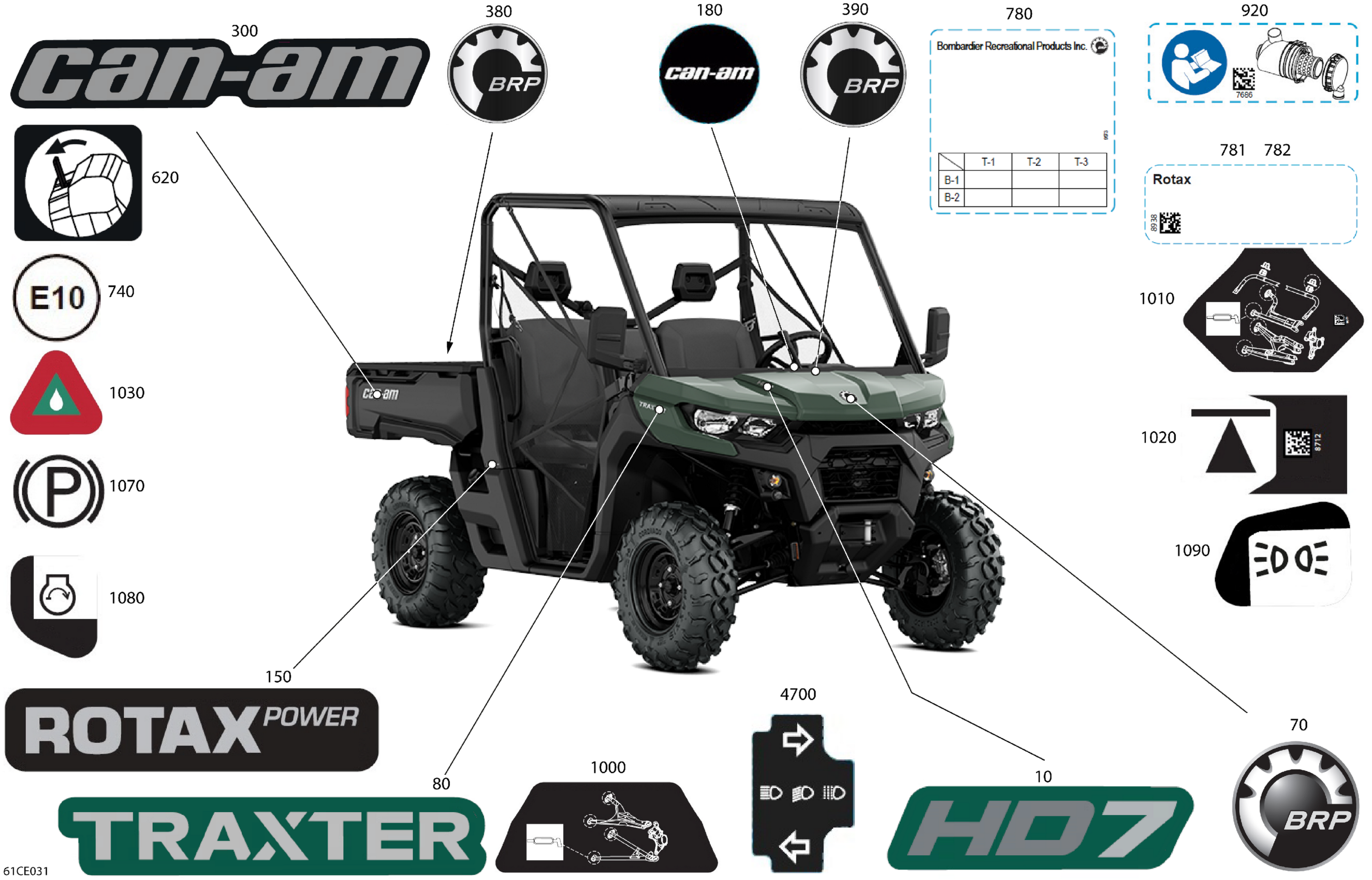Can-Am CE - Traxter - HD7 - BASE - 6XSN - Compass Green - 62" Width - 2025 Body - Decals Diagram