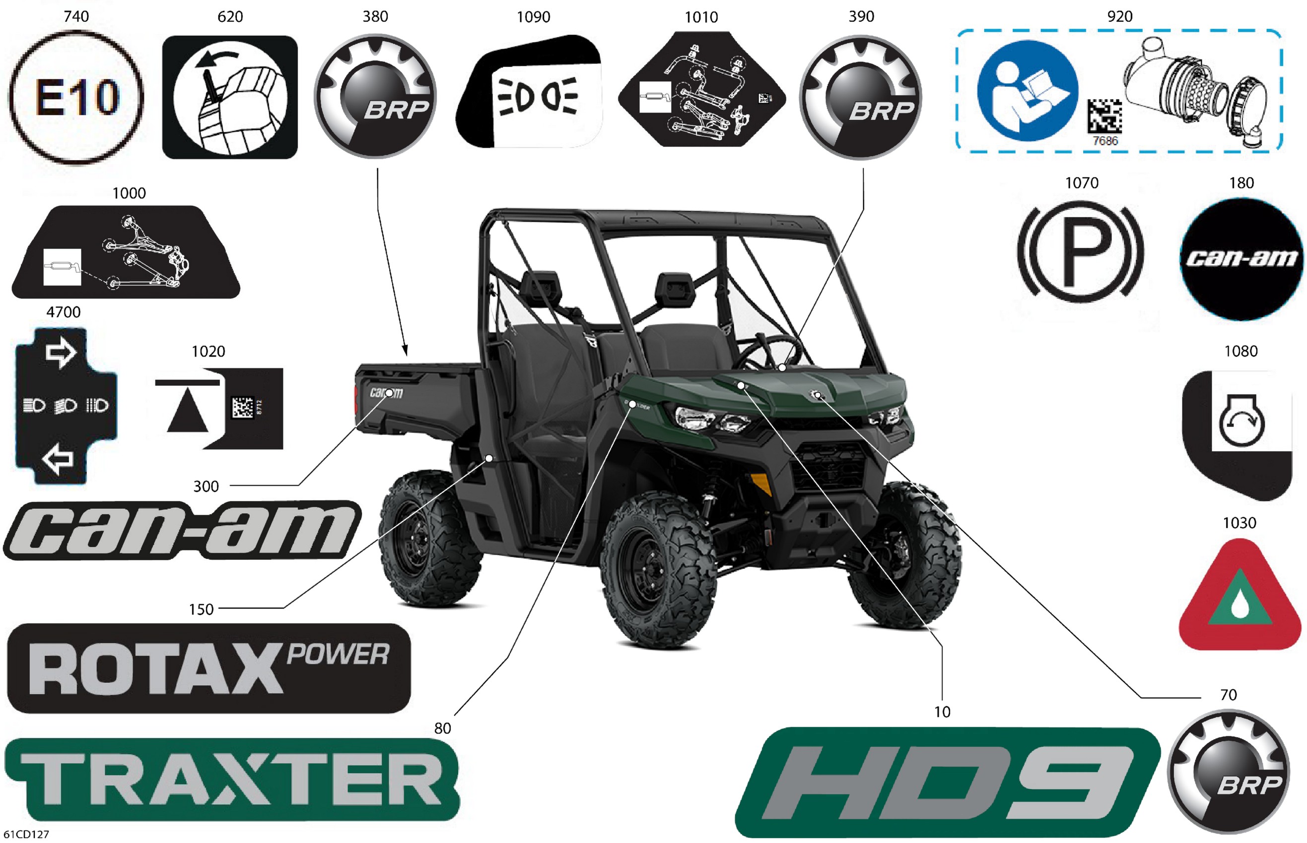 Can-Am CE - Traxter HD9 - BASE - 6WRN - Tundra Green - 62" Width, 2024 07- Body - Decals Diagram