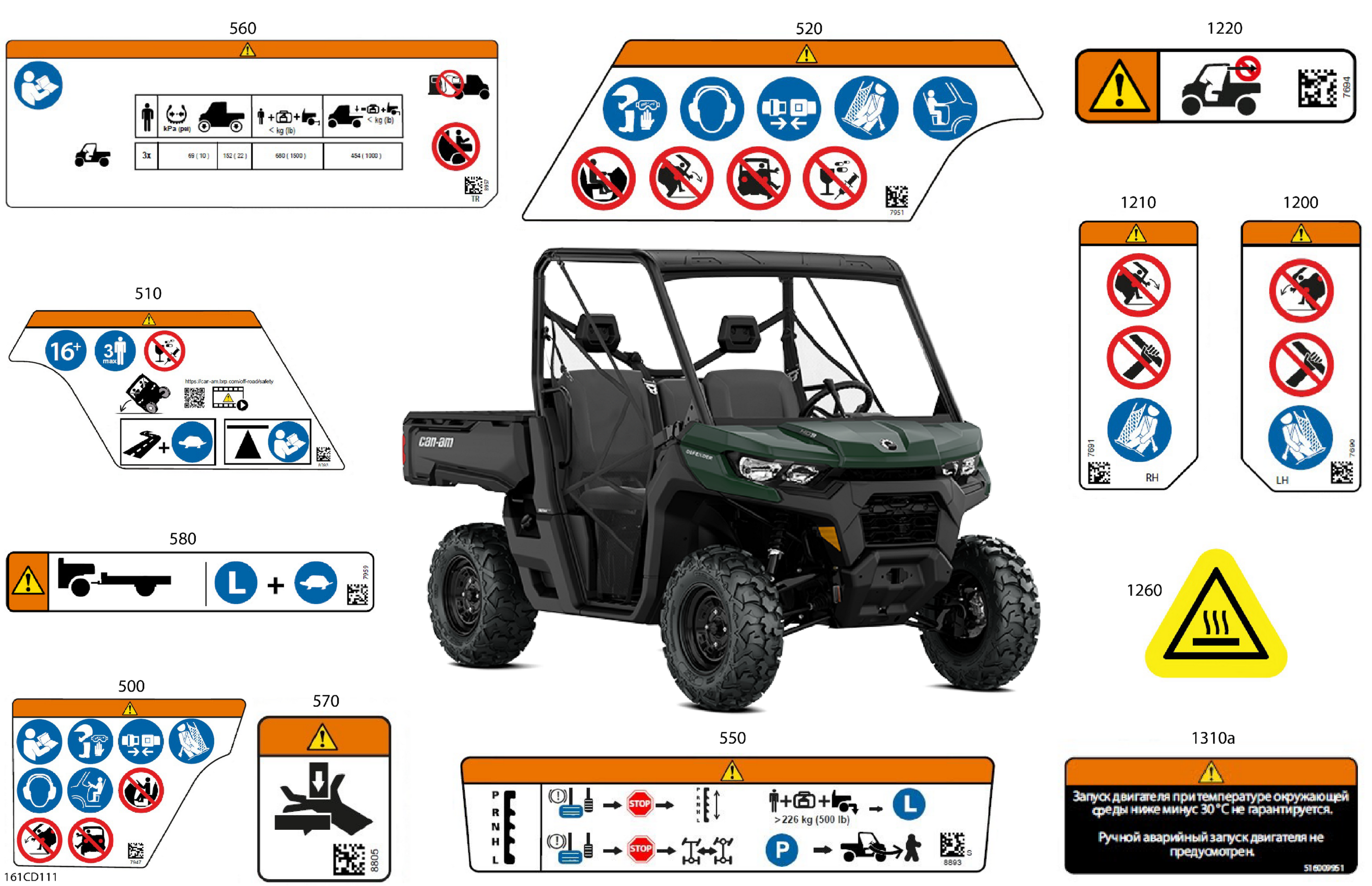 Can-Am CE - Traxter HD9 - BASE - 6WRN - Tundra Green - 62" Width, 2024 Body - Warning Decals Diagram