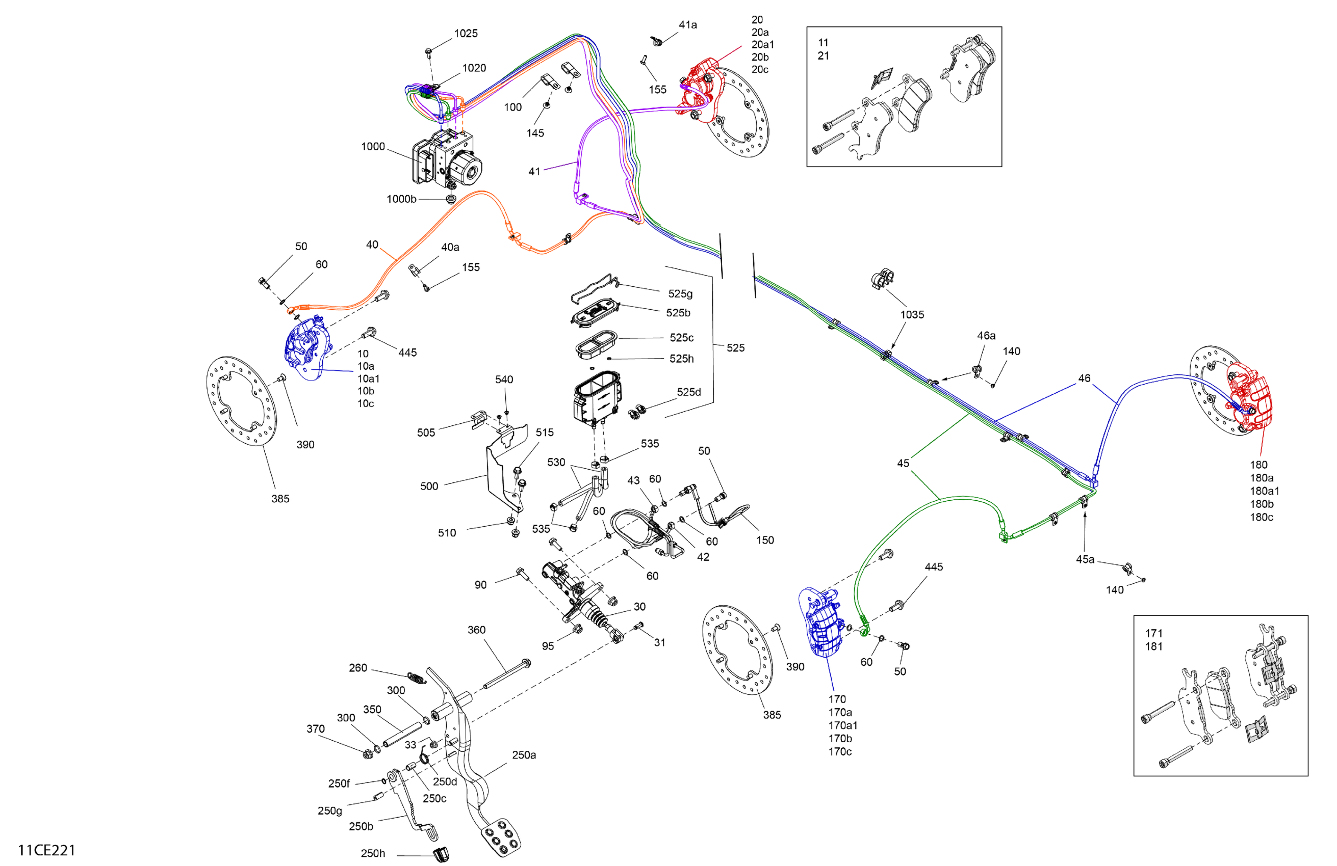 Can-Am CE - Traxter - HD9 - XU - 6NSN - Dusty Navy - 64" Width - 2025 Mechanic - Brake System Diagram