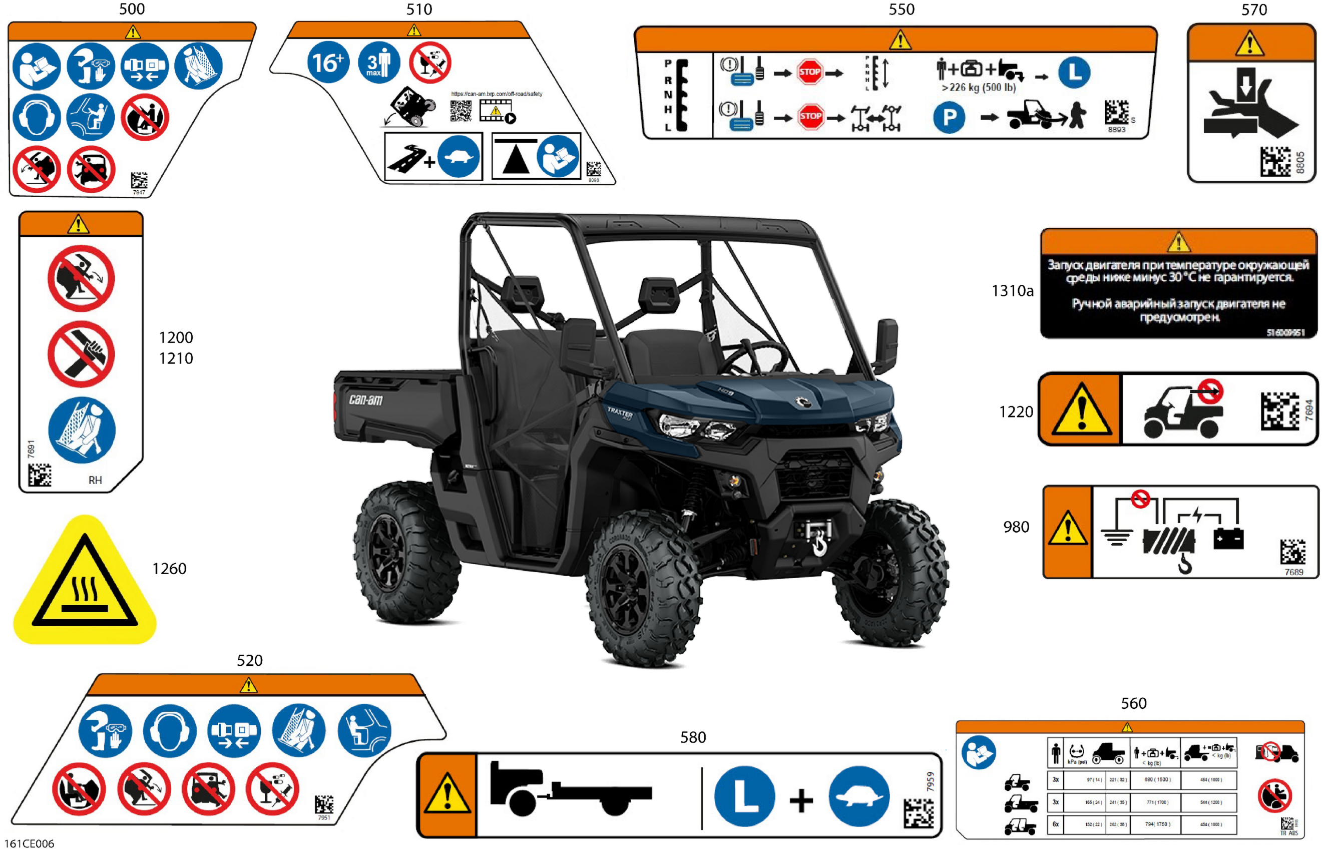 Can-Am CE - Traxter - HD9 - XU - 6NSN - Dusty Navy - 64" Width - 2025 Body - Warning Decals Diagram