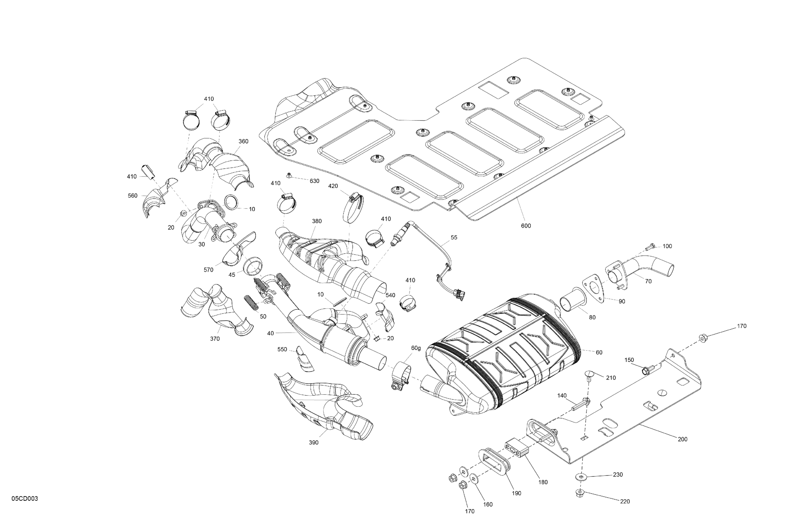 Can-Am CE - Traxter MAX HD10 - XU - 8NRN - Asphalt Grey - 64" Width, 2024 Engine - Exhaust Diagram