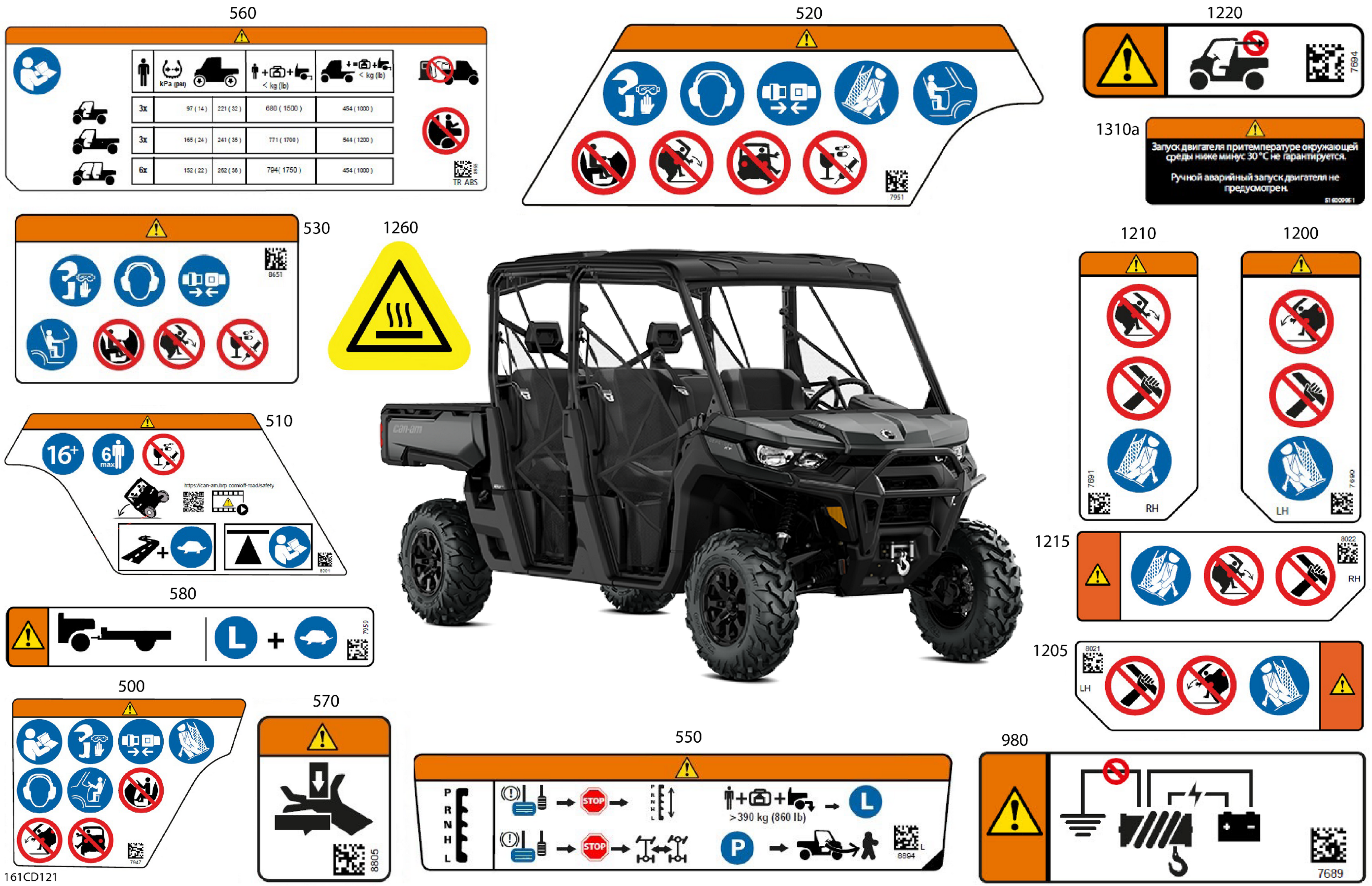 Can-Am CE - Traxter MAX HD10 - XU - 8NRN - Asphalt Grey - 64" Width, 2024 Body - Warning Decals Diagram
