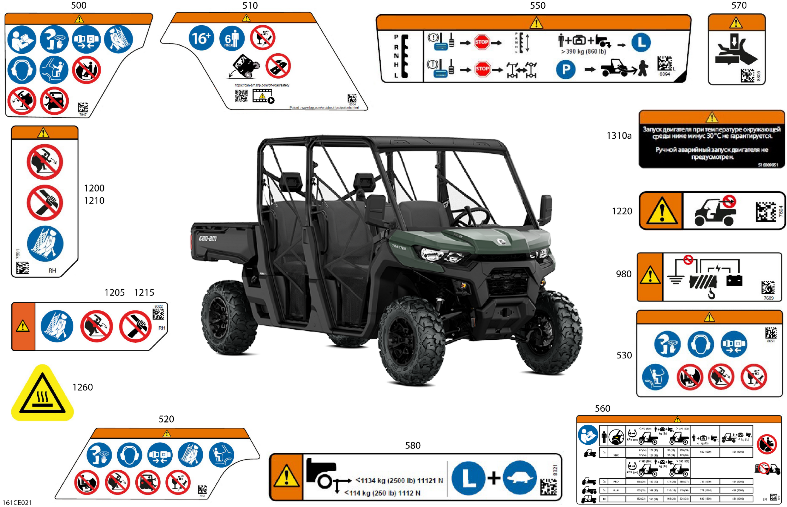 Can-Am CE - Traxter Max - HD9 - DPS - 8RSN - Compass Green - 62" Width - 2025 Body - Warning Decals Diagram