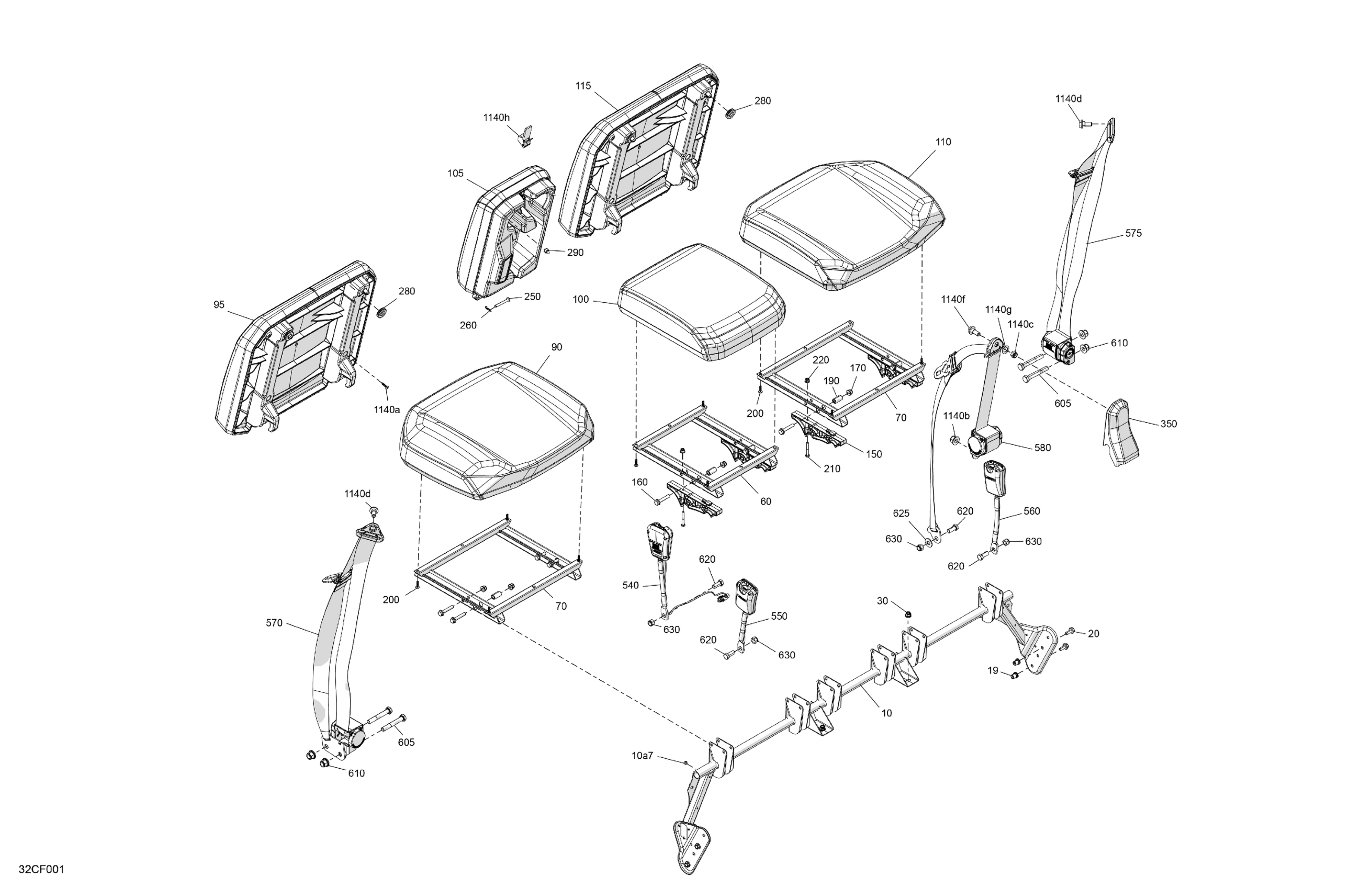 Can-Am CE - Traxter MAX - HD9 - DPS - 8RTM - Compass Green - 62" Width, 2026 Body - Seat - Front Section Diagram