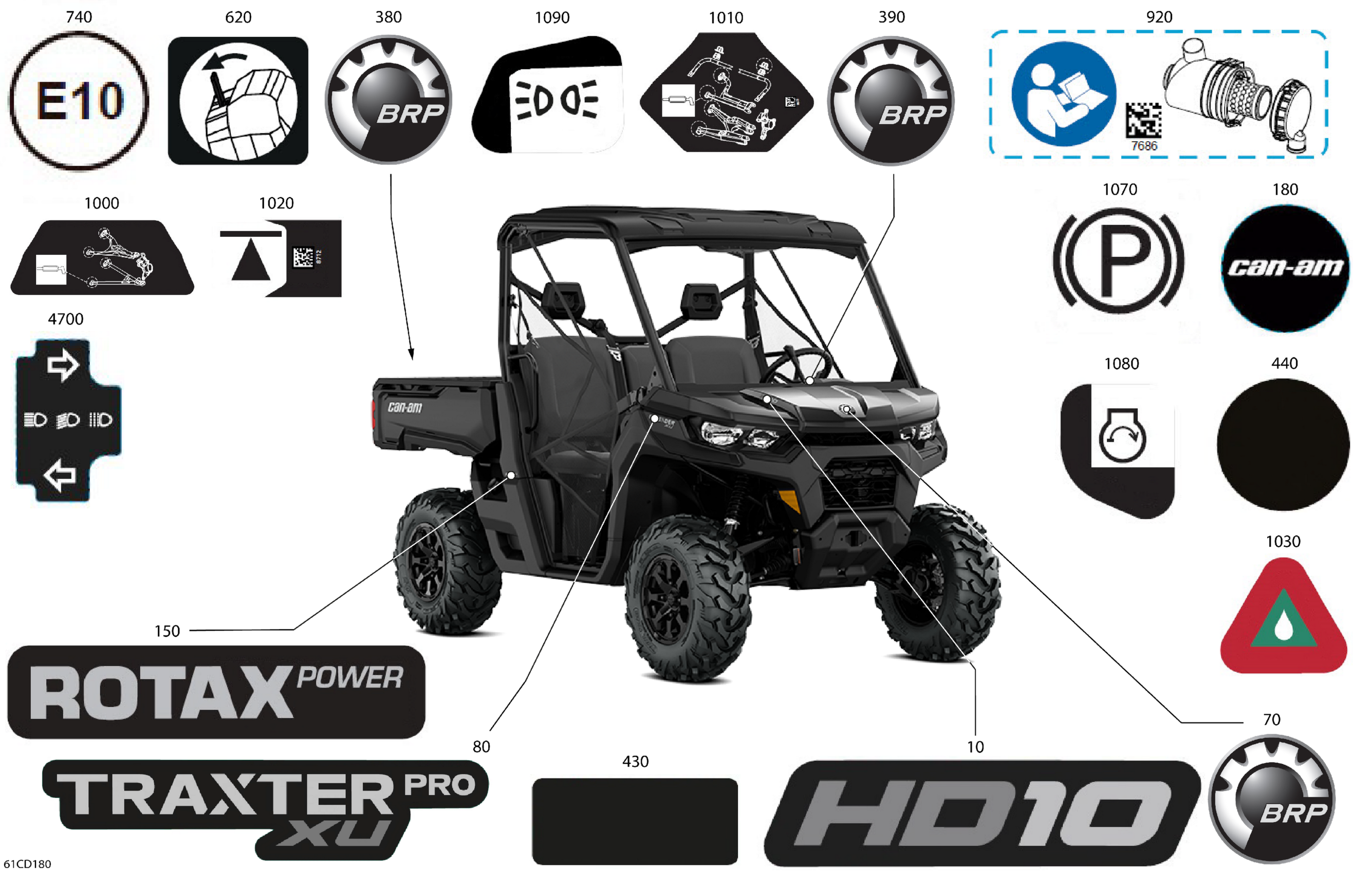 Can-Am CE - Traxter PRO HD10 - XU - 8VRM - Timeless Black Metallic - 64" Width, 2024 Body - Decals Diagram