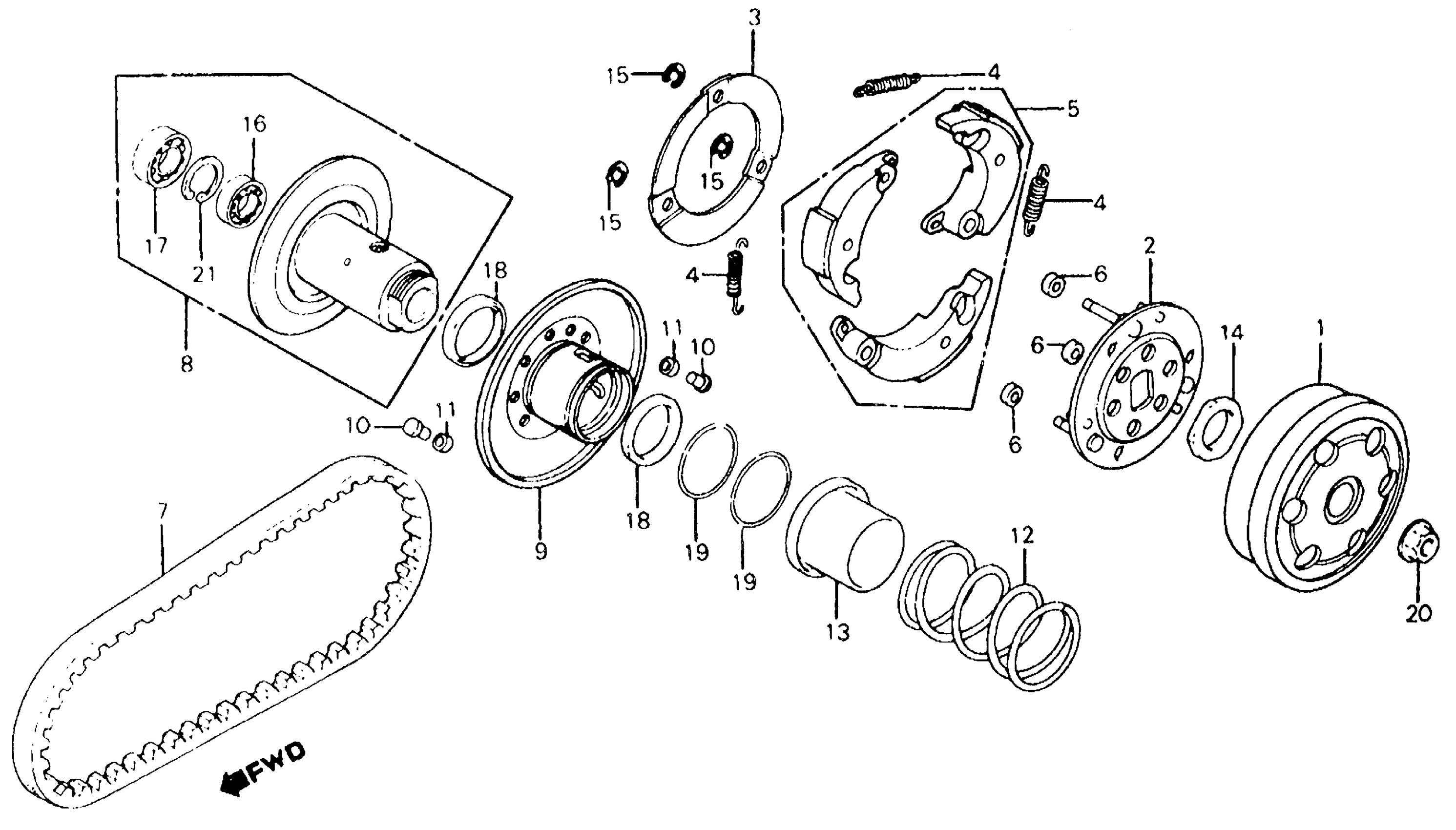 Honda CH125A (84) ELITE 125, JPN, VIN# JH2JF020-EK000006 DRIVEN FACE Diagram