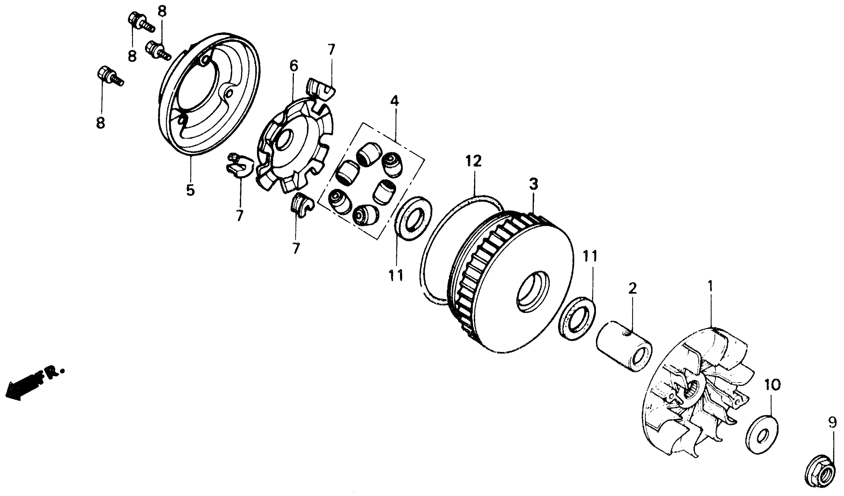Honda CH150DA (86) ELITE 150 DELUXE, JPN, VIN# JH2KF012-GK100001 TO JH2KF012-GK115201 DRIVE FACE Diagram