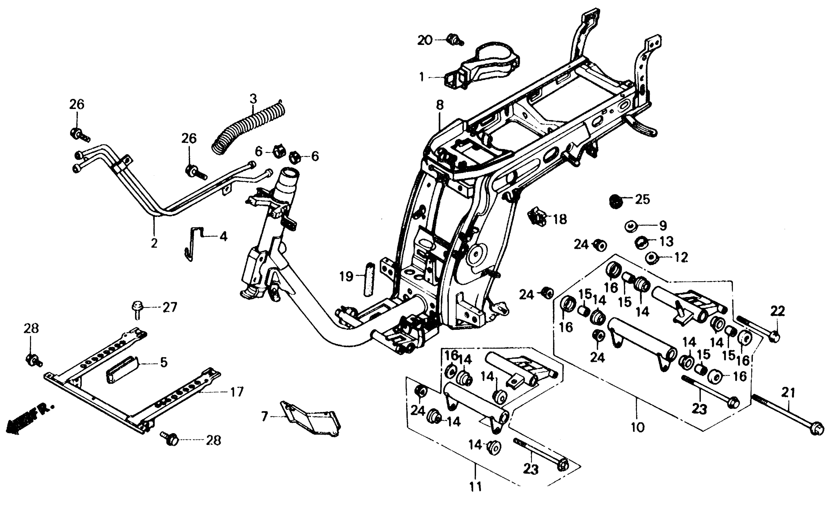 Honda CH150DA (86) ELITE 150 DELUXE, JPN, VIN# JH2KF012-GK100001 TO JH2KF012-GK115201 FRAME 85-86 Diagram