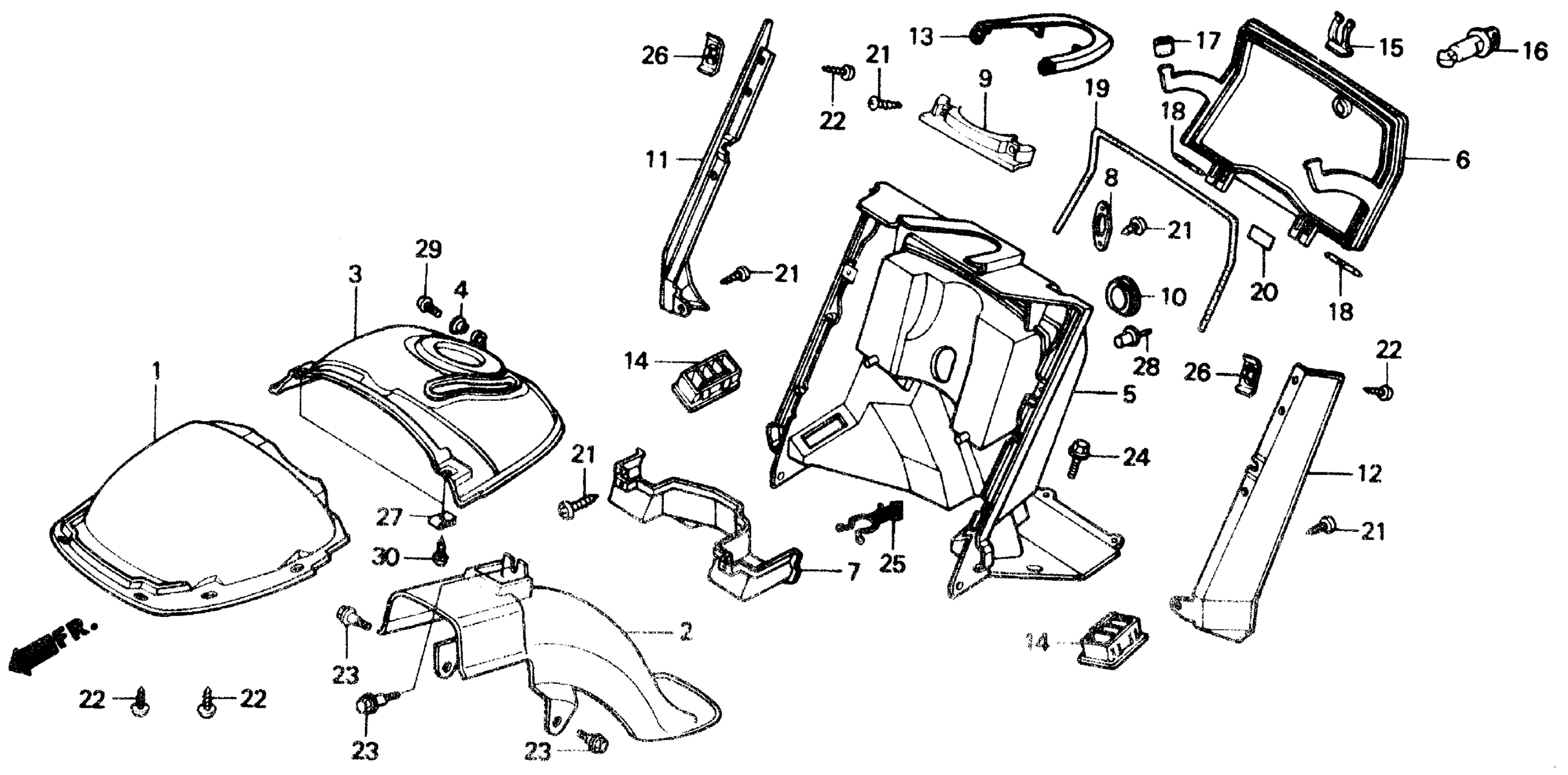 Honda CH150DAC (86) ELITE 150 DELUXE, JPN, VIN# JH2KF013-GK100006 TO JH2KF013-GK105161 FRONT FENDER 85-86 Diagram