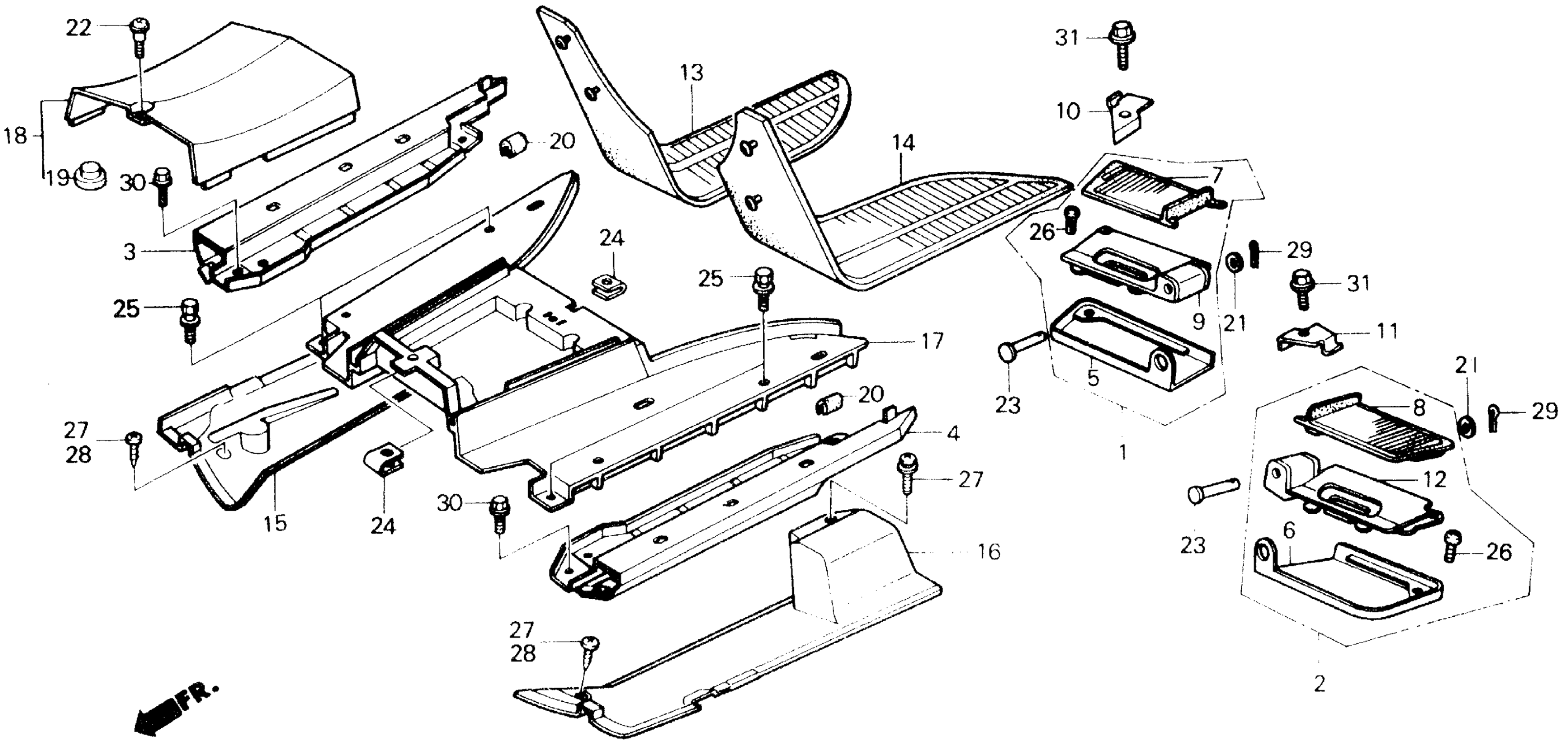 Honda CH250A (86) ELITE 250, JPN, VIN# JH2MF010-GK100001 TO JH2MF010-GK106405 FLOOR PANEL Diagram