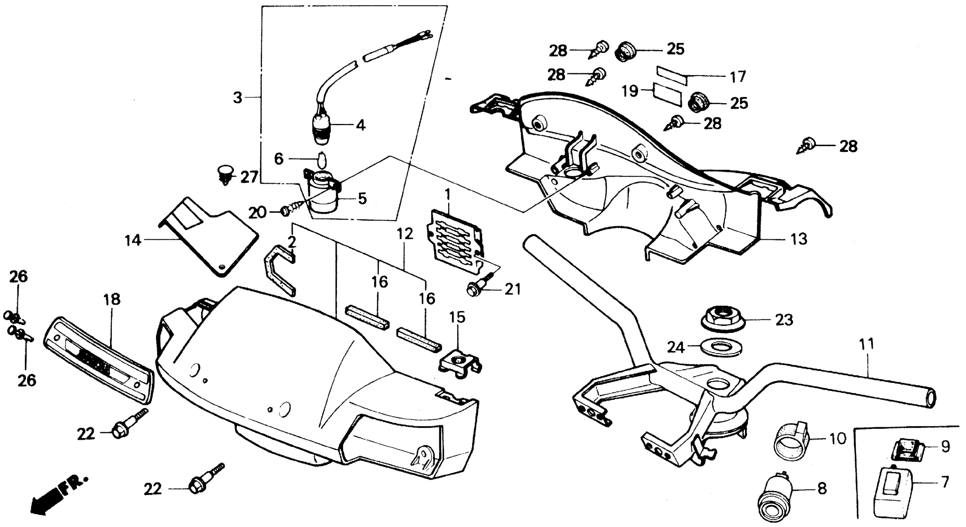 Honda CH250A (88) ELITE 250, JPN, VIN# JH2MF010-JK300001 TO JH2MF010-JK301100 HANDLEBAR Diagram
