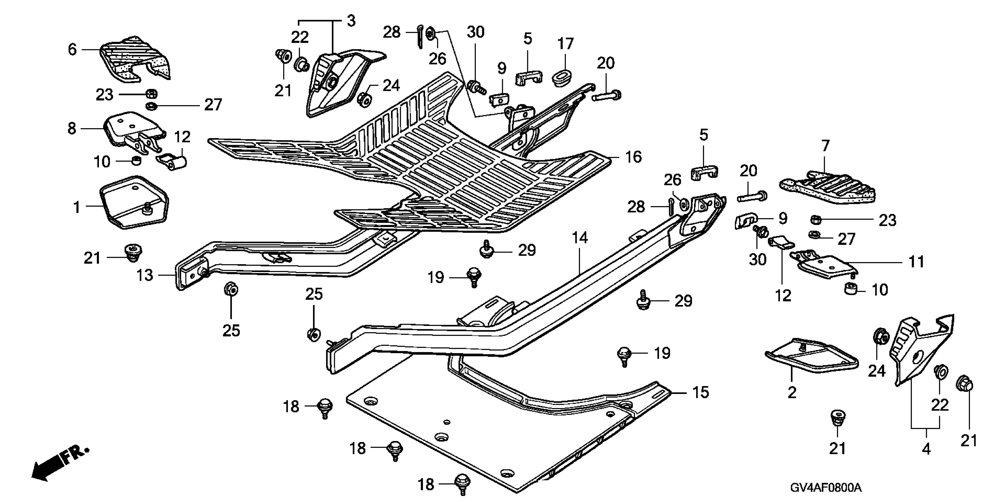 Honda CH80A (04) ELITE 80, MEX, VIN# 3H1HF030-4D900001 TO 3H1HF030-4D999999 FLOOR PANEL Diagram