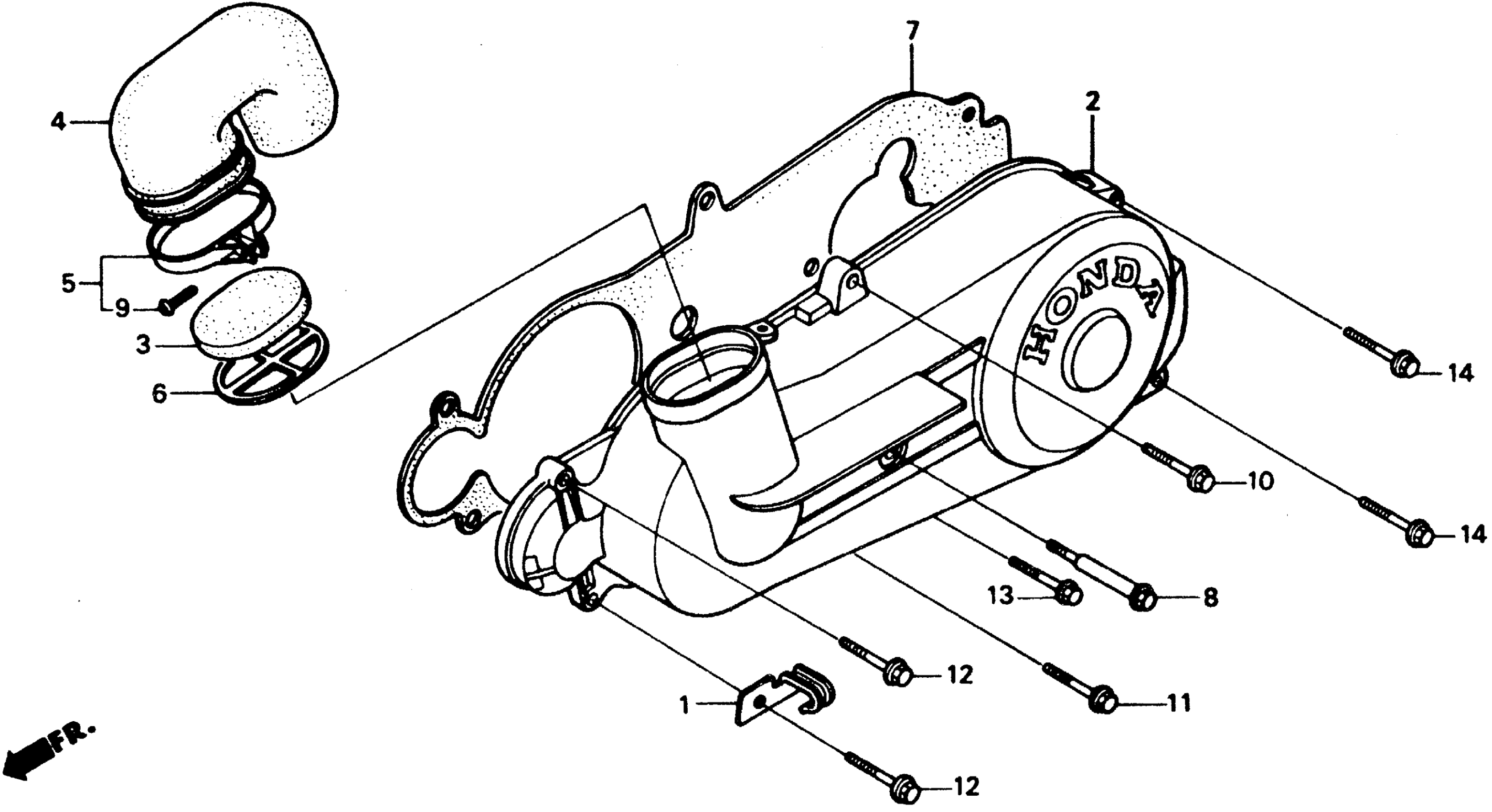 Honda CH80A (92) ELITE 80, MEX, VIN# 3H1HF030-ND700001 LEFT SIDE COVER Diagram