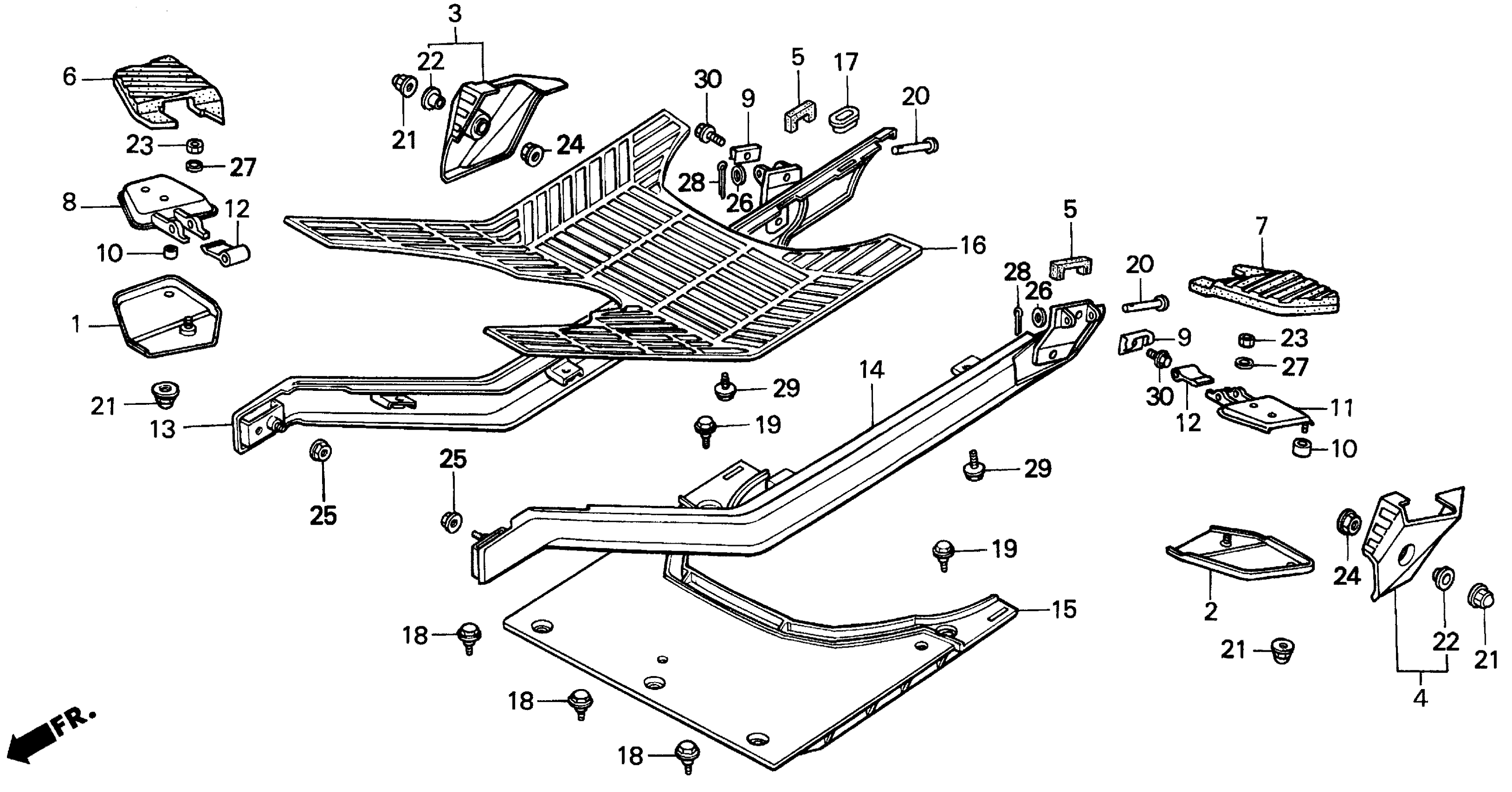 Honda CH80A (94) ELITE 80, MEX, VIN# 3H1HF030-RD900001 TO 3H1HF030-RD902650 FLOOR PANEL Diagram