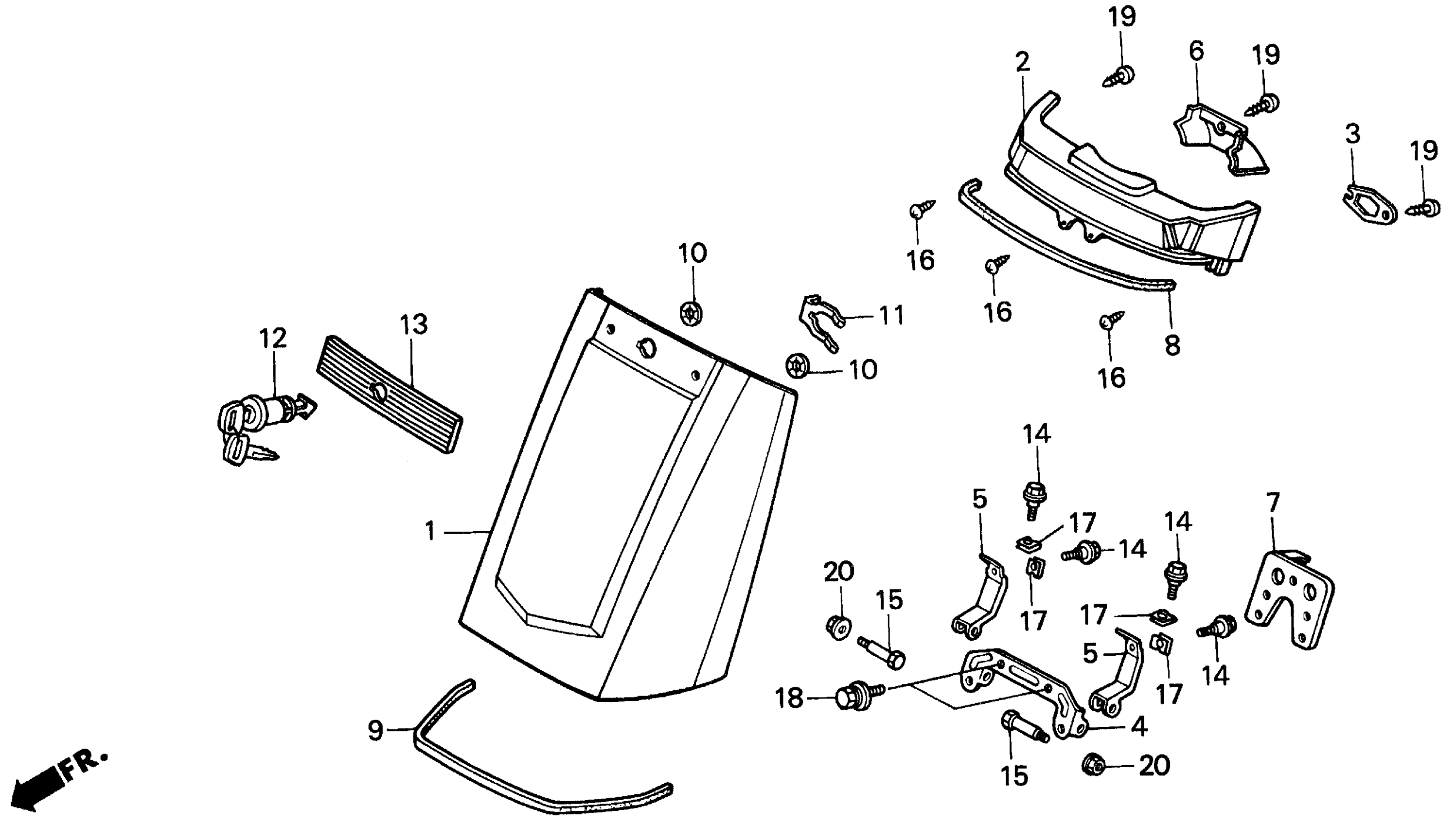 Honda CH80A (95) ELITE 80, MEX, VIN# 3H1HF030-SD000001 TO 3H1HF030-SD002400 TRUNK LID Diagram