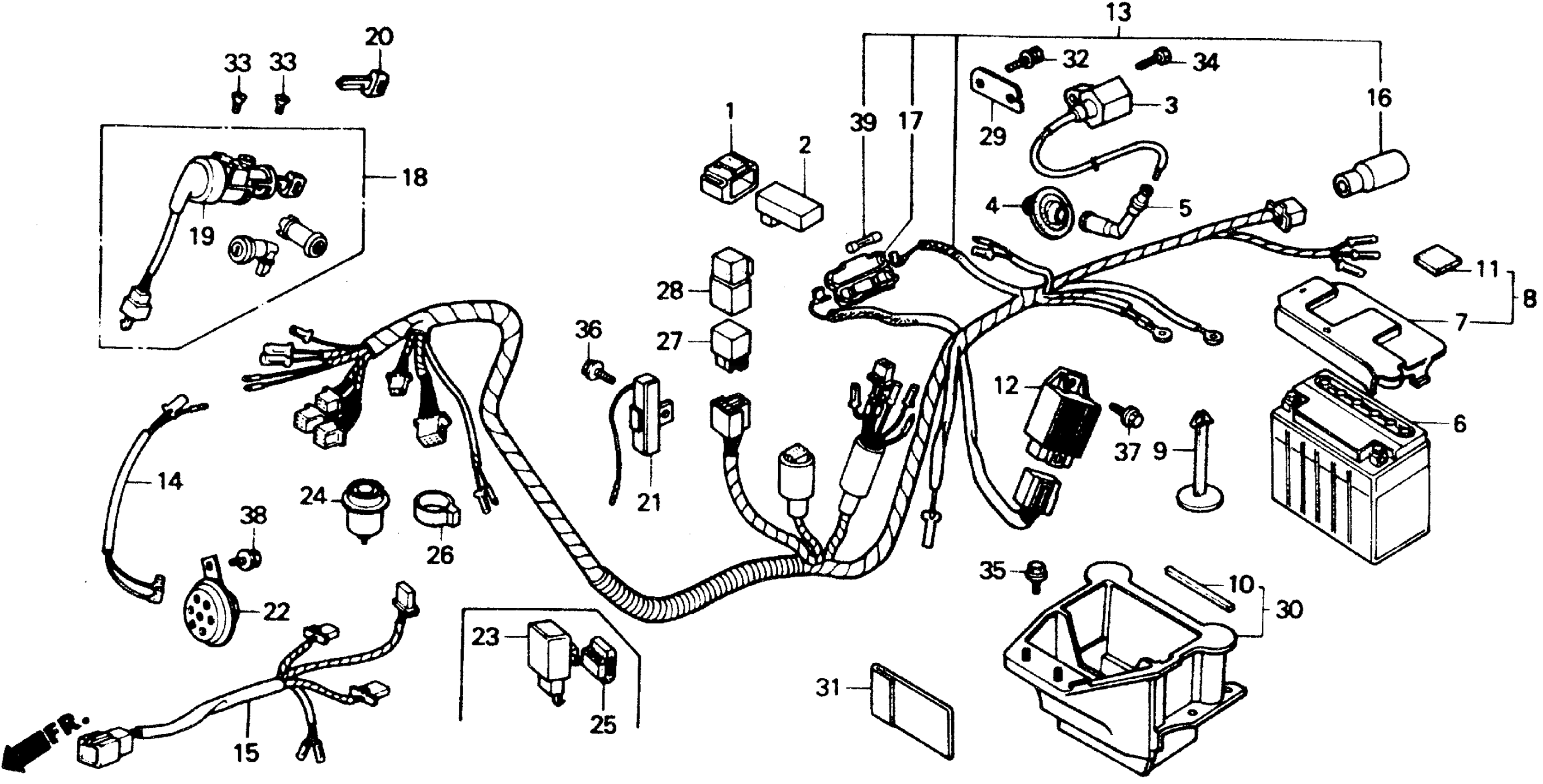 Honda CH80AC (87) ELITE 80, JPN, VIN# JH2HF031-HS200001 TO JH2HF031-HS205744 WIRE HARNESS Diagram