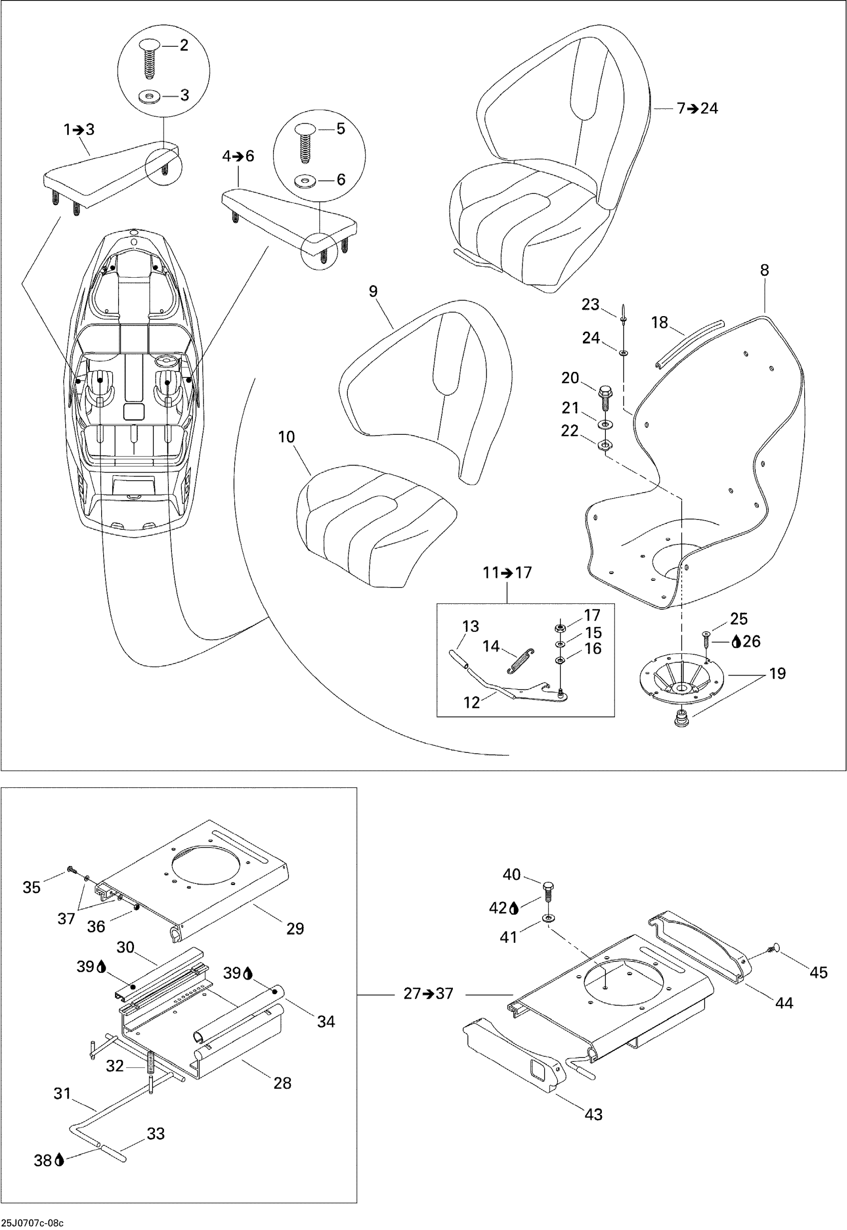 Sea-doo Challenger 180 215 IC, 2007 09- Seat Diagram