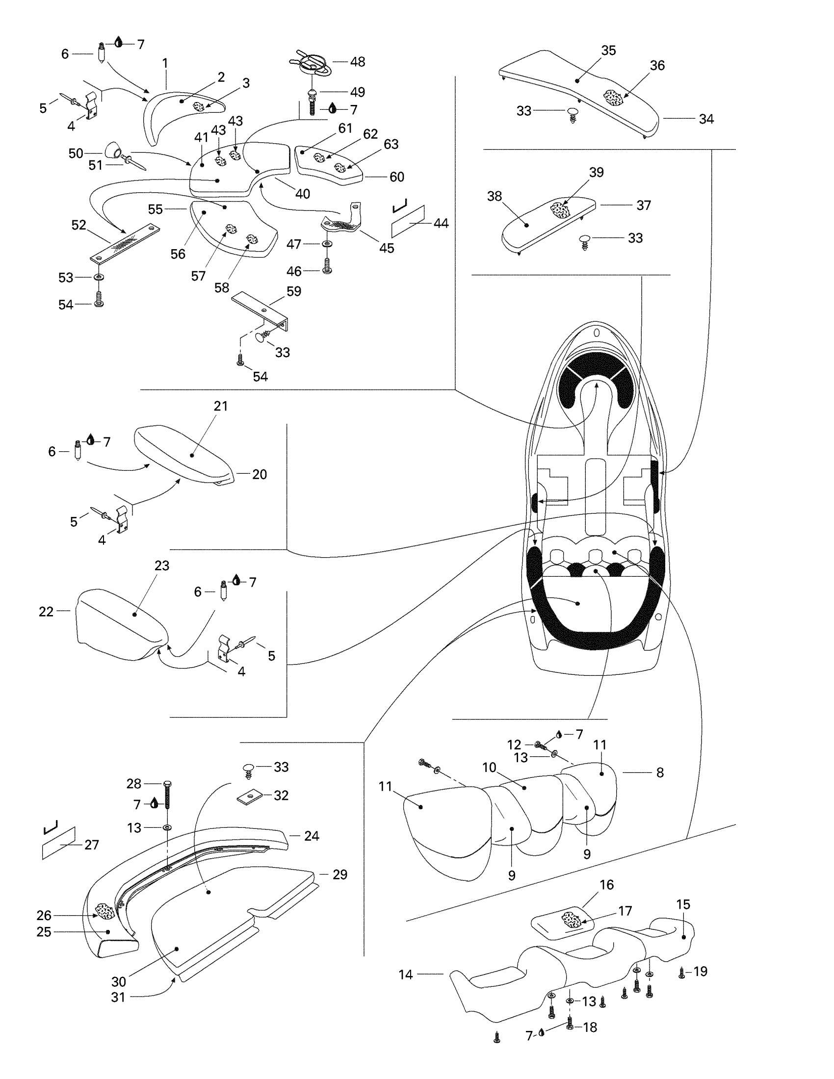 Center Front Seat Ass'y | Includes 40 - 48.