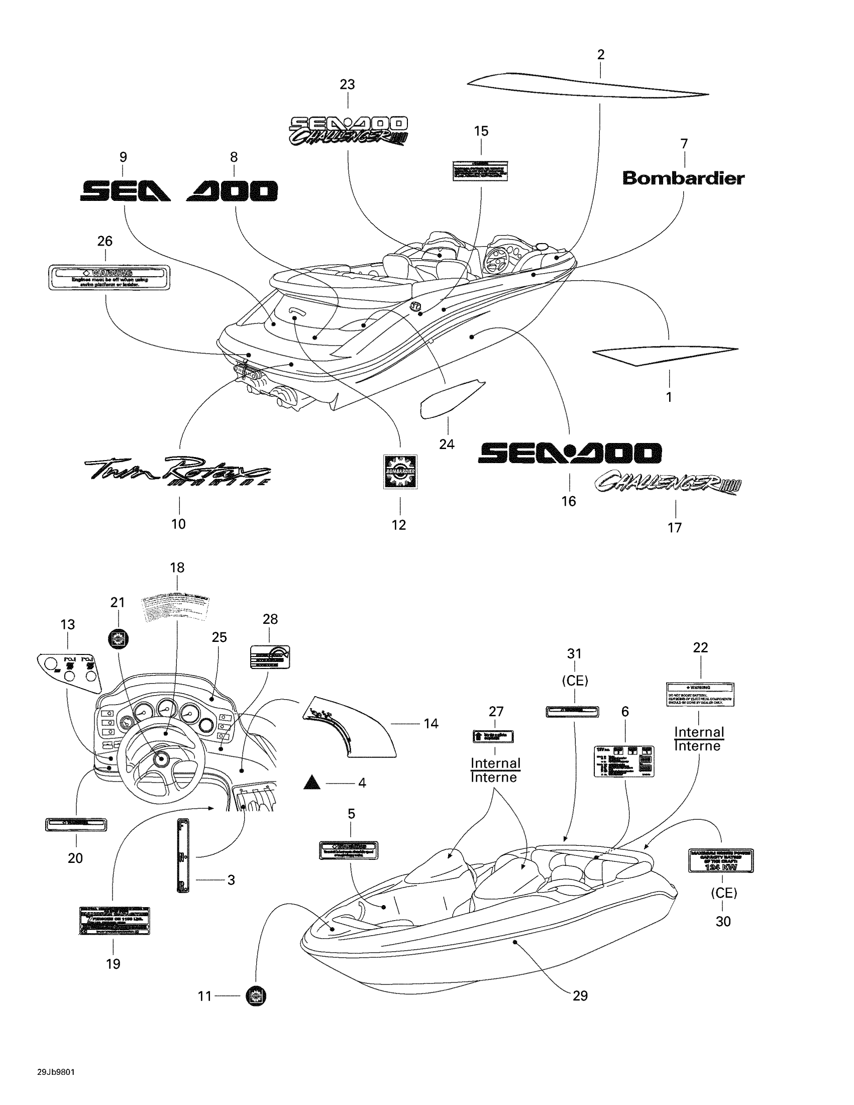 Sea-doo Challenger 1800, 5611/5616, 1998 Decals Diagram