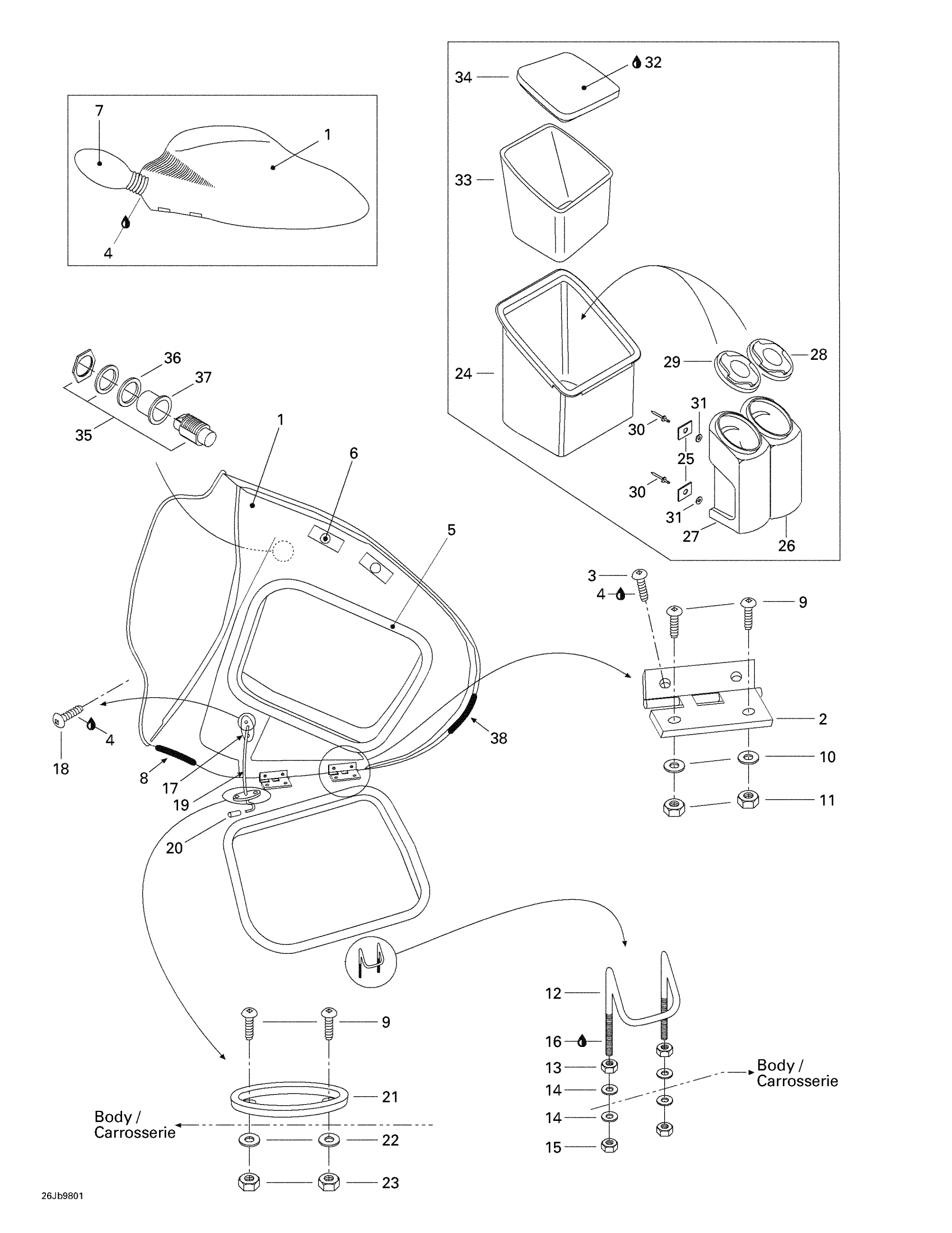 Sea-doo Challenger 1800, 5611/5616, 1998 Front Storage Compartment Diagram