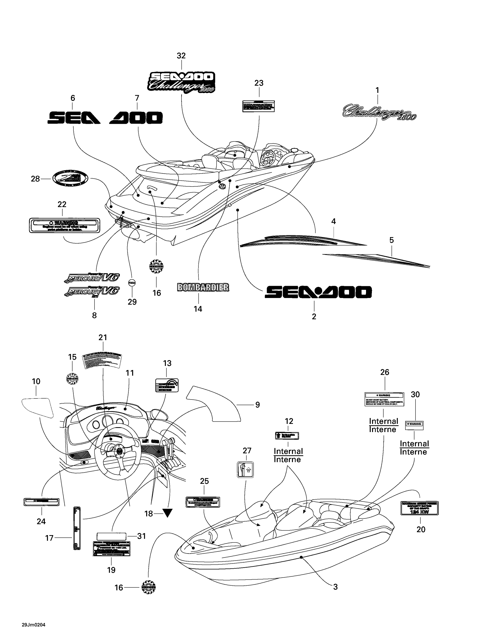 Sea-doo Challenger 1800, 5701 (210), 2002 09- Decals Diagram