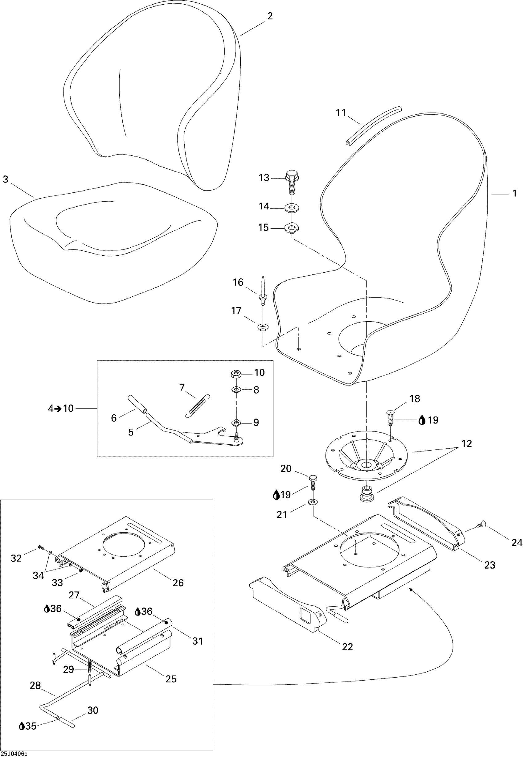 Sea-doo Challenger 2000 09- Seat (Driver and Passenger) Diagram