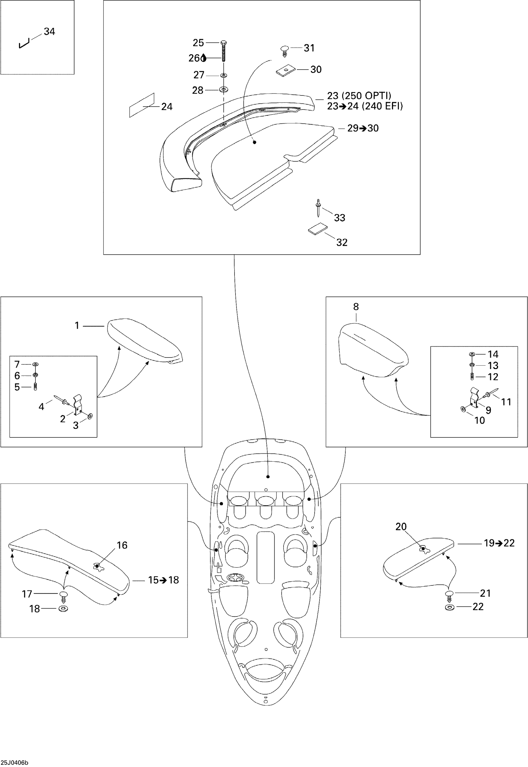 Sea-doo Challenger 2000 09- Seat (Platform and Armrest) Diagram